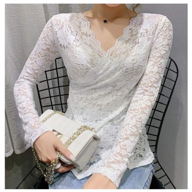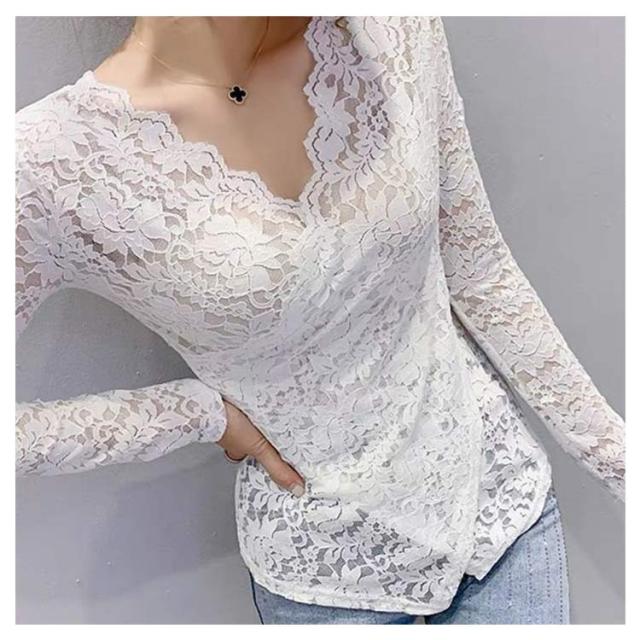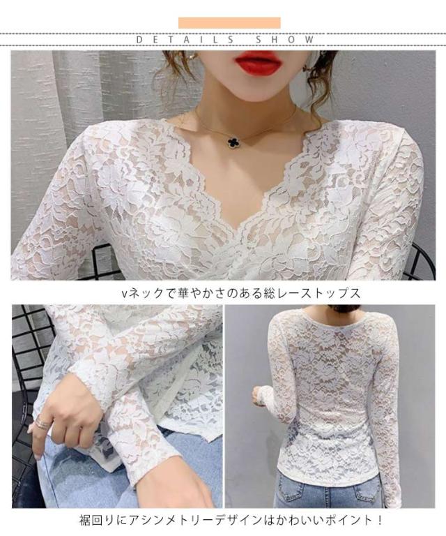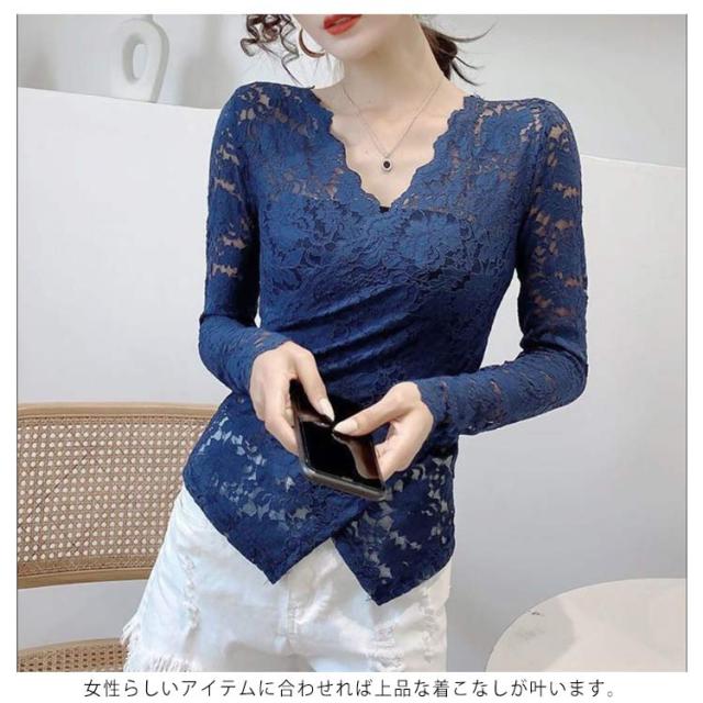 透け感 レディース 長袖 カットソー インナーウェア 母の日 vネック 長袖 tシャツ 春 秋 冬 総レース タイト インナー 大人 アシンメトリー 20代 30代 40代 S-3XL レース