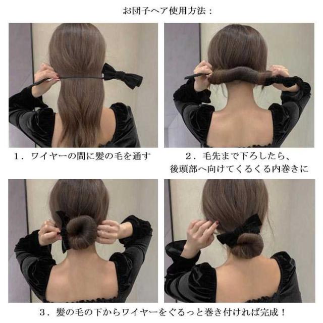 | 初心者でも簡単にできる可愛いおだんごヘアー。 そのままぐるぐる巻いてポニーにしても可愛いですよ♪ 自分で簡単にアップスタイルが作れる便利アイテムです。 お団子ヘア使用方法: 1.ワイヤーの間に髪の毛を通す 2.毛先まで下ろしたら、後頭部へ向けてくるくる内巻きに 3.髪の毛の下からワイヤーをぐるっと巻き付ければ完成! | |