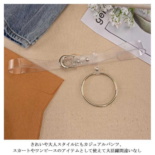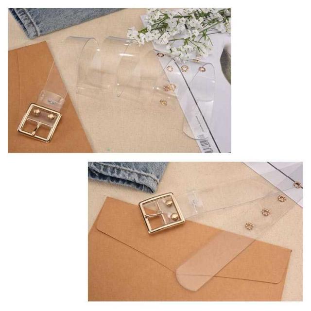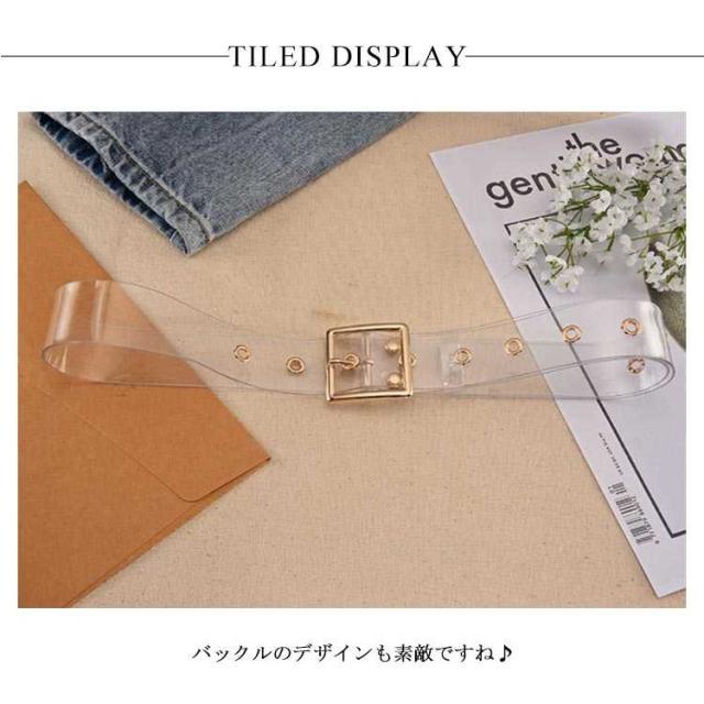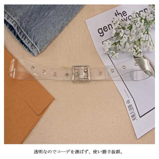 | 透明で上品なレディース用のベルトです。 おしゃれのワンポイントになります。 きれいや大人スタイルにもカジュアルパンツ、スカートやワンピースのアイテムとして使えて大活躍間違いなし | |