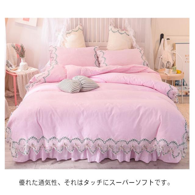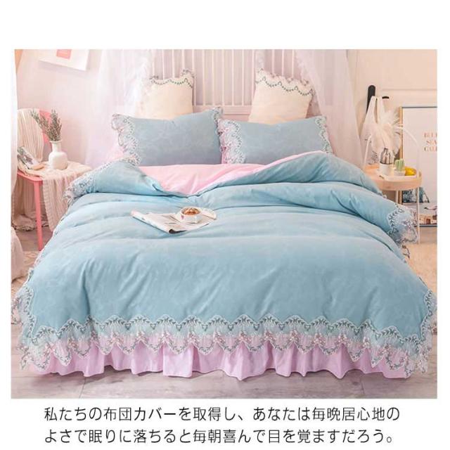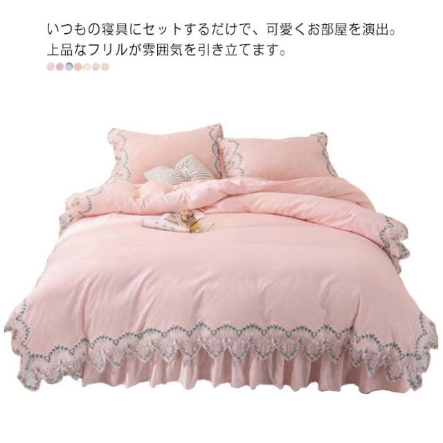 ベッドカバー 掛け布団カバー 全7色×3サイズ!布団カバー 枕カバー レース 敷カバー ダブル 敷き布団カバー 寝具カバー セット 4点セット ベッドスプレッド 花柄 学生 和式 姫系 選べる3タイプ 自宅 セット