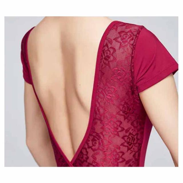 | 上品なレースの大きさで縦長に見える素敵なデザインのバレエレオタード。 バックレースが気分で変えられるのがよく、デコルテから二の腕がとてもすっきりきれいに見えます。 生地は薄いのでボディファンデーション着用の上に着るのが良い! 背中は大きめのV字ラインで女性らしいしなやかな動きを魅せてくれます。 ヒップをすっぽり包んでくれるデザインなので、下着も気にならずレッスンできます。 フィット感・デザイン・吸収性に優れたバレエレオタードです! | |