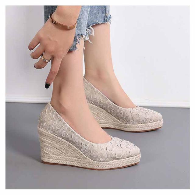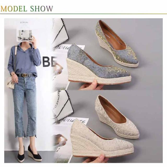 | 見た目の美しさと履き心地のよさを更に追及したウェッジヒールパンプス。 歩くたびにキラキラと上品に輝くので、履くだけで華やかな足元に。 ふわふわクッションが入ったインソールで快適な履き心地を実現! 安定感のある約8cmのウェッジヒールと屈曲性の良いアウトソールで歩きやすい。 足元にボリュームが出るので美脚効果抜群。可愛らしく上品なスタイルを演出してくれます。 デイリー使いはもちろん、フォーマルな場面でも活躍してくれる優秀アイテムです。 | |