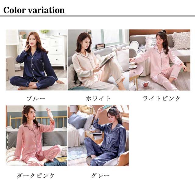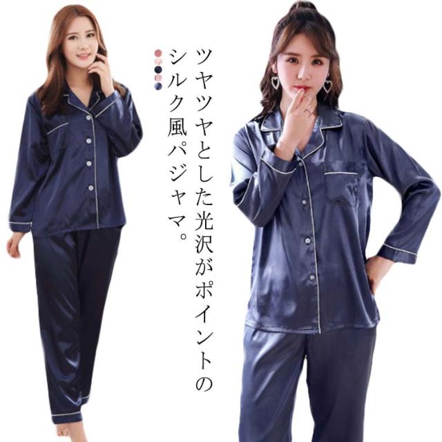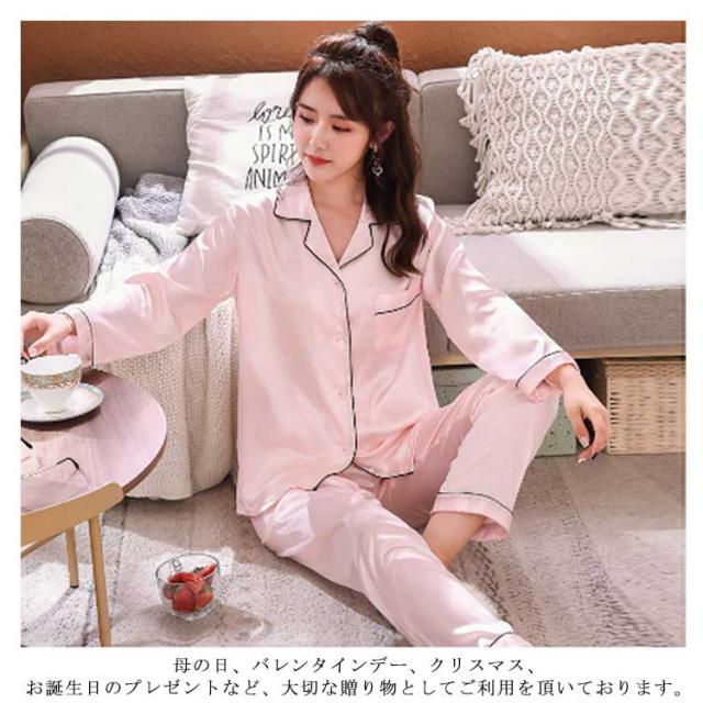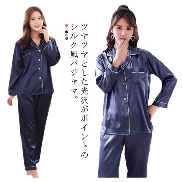 パジャマ サテン 前開き 冬 長袖 かわいい 上下セット 女子 ナイトウェア パジャマ 部屋着 ルームウェア