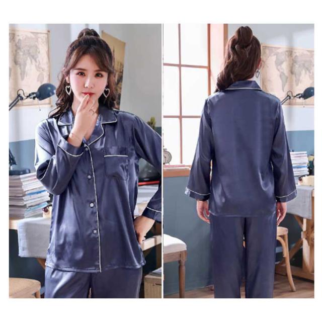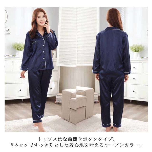 | ツヤツヤとした光沢がポイントのシルク風パジャマ。シンプルでおしゃれなデザイン。光沢があり、高級感あふれるナイトウェア。 トップスはな前開きボタンタイプ、Vネックですっきりとした着心地を叶えるオープンカラー。 お腹が締め付けられないので、帰宅後や休日オフの日に、お泊り会や旅行等にもリラックスタイムとしてお過ごしいただけます。 母の日、バレンタインデー、クリスマス、お誕生日のプレゼントなど、大切な贈り物としてご利用を頂いております。 | |