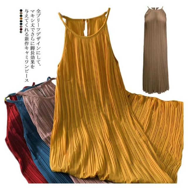 キャミワンピース レディース ワンピース プリーツ レイヤード セクシー 無地 春 夏 秋 キャミワンピ プリーツワンピ ロングワンピ インナーワンピース おしゃれ