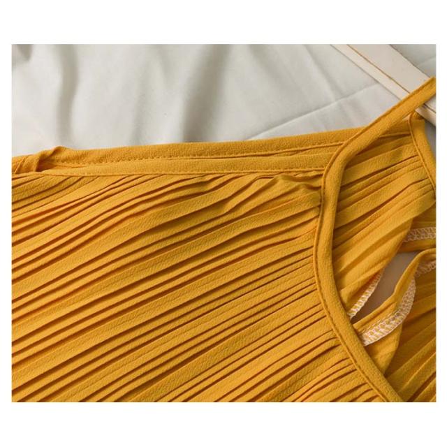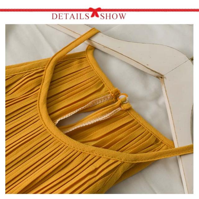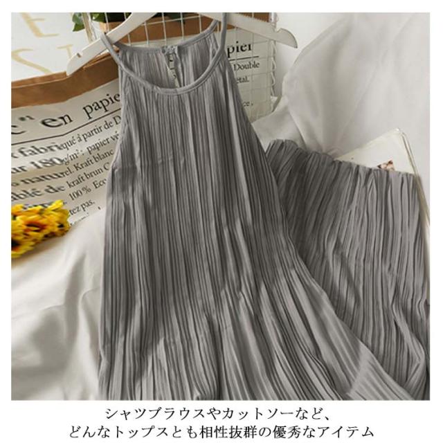 | 全プリーツデザインにして、マキシ丈でさらに脚長効果を与えてくれる新作キャミワンピース 抜け感を演出する深Uネック、ざっくり開いたネックラインが女性らしさも与えます シャツブラウスやカットソーなど、どんなトップスとも相性抜群の優秀なアイテム | |