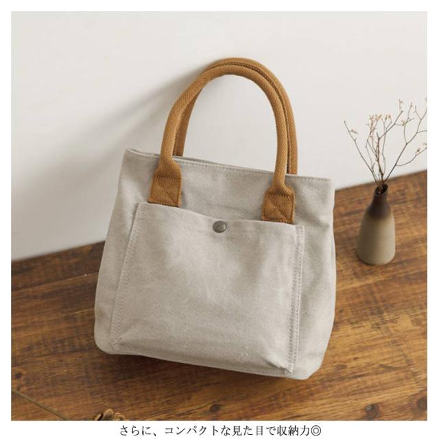 | コンパクトだけど、小さすぎないちょうどいいミニトート ちょっとそこまでのお出かけにピッタリ! キャンバス素材でナチュラルな風合いで 無地のシンプルなデザインだからコーデもシーンも選ばない! さらに、コンパクトな見た目で収納力◎ ポケットもあるので小物の収納スペースにも困りません! | |