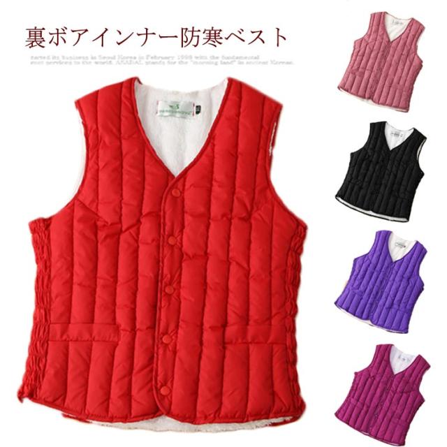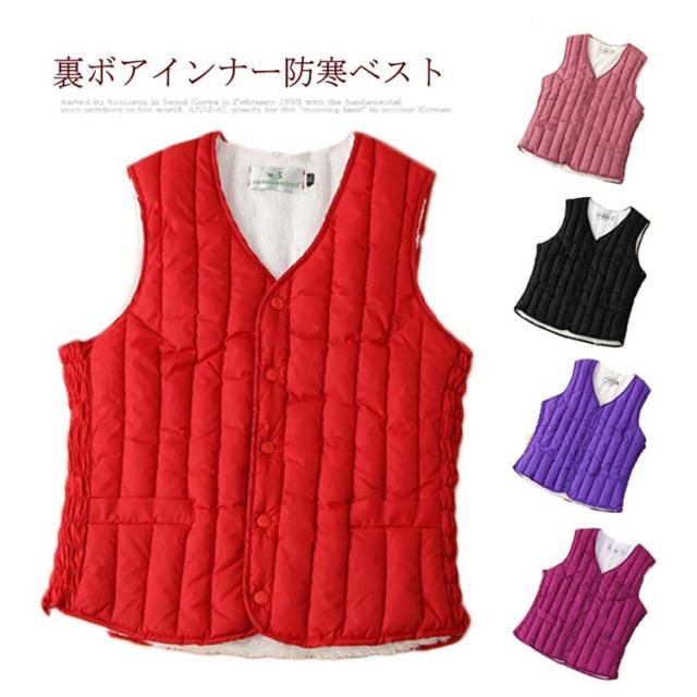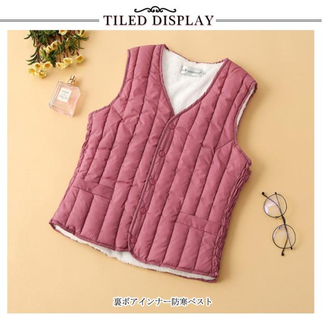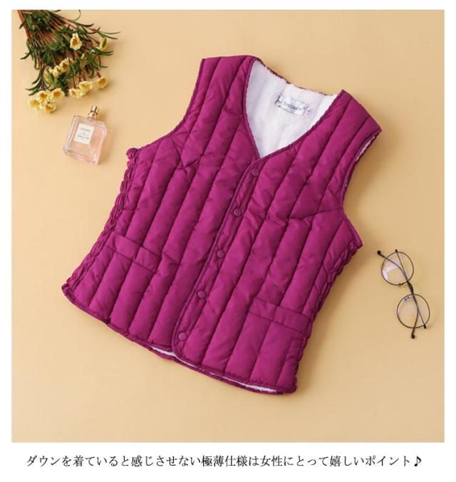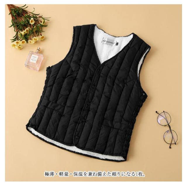 裏ボア Vネック ベスト インナーベスト ノーカラーインナー レディース あたたかい 軽量 防寒 中綿 ベスト チョッキ ジレ 防寒ベスト 重ね着 カジュアル アウター 防寒服 寒さ対策 袖なし 暖かい 秋 冬 通勤 裏起毛