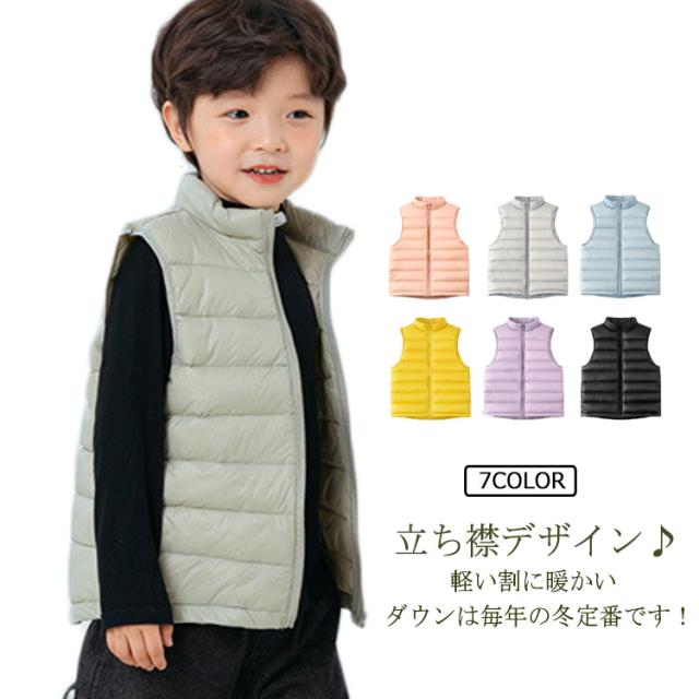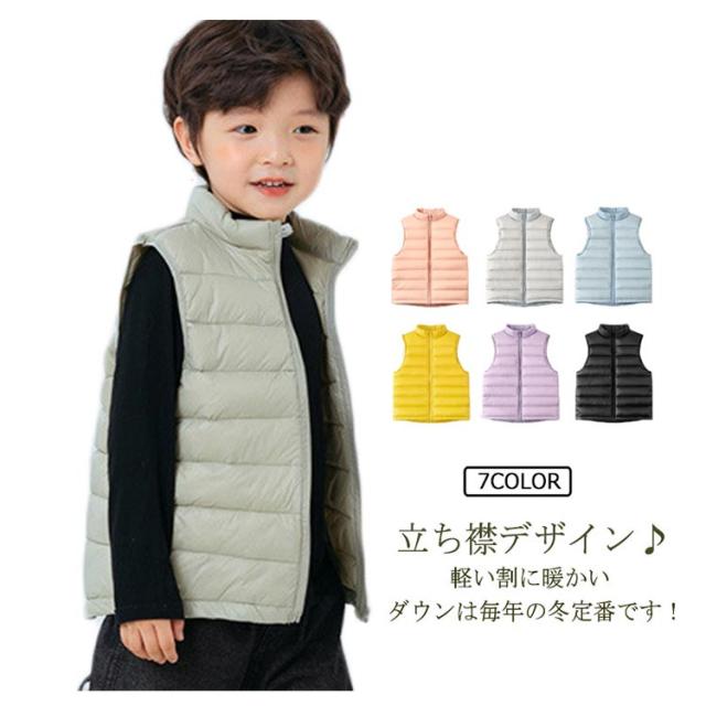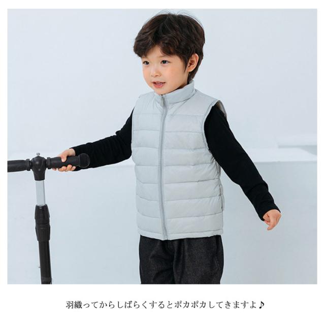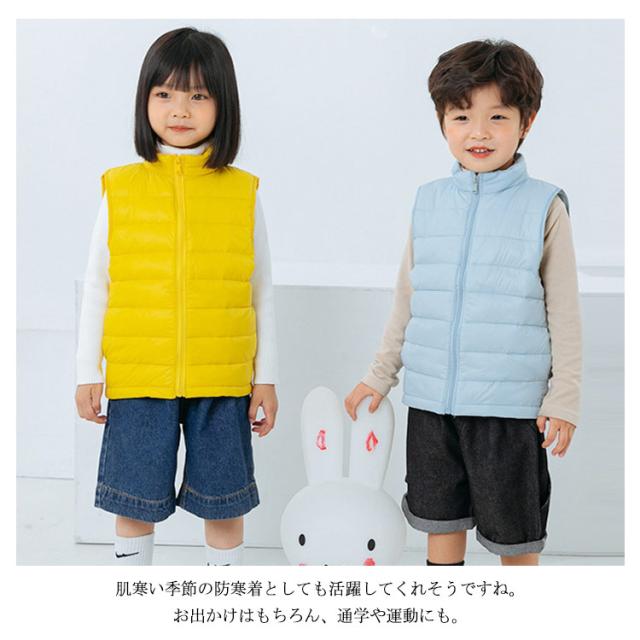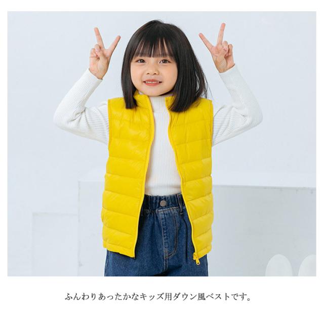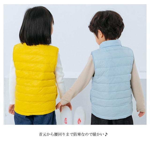 子供服 送料無料 キッズ ダウンベスト キルトベスト 男の子 女の子 キッズ 前開き アウター 立ち襟 ベスト ジレ チョッキ 無地 ライナー 秋冬春 薄手 防寒保温 軽量 ジュニア おしゃれ