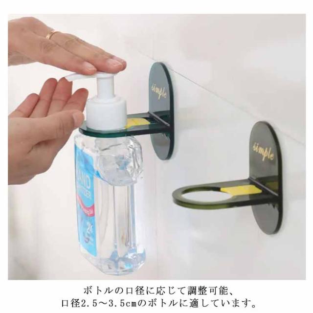 | 壁に貼り付けるオシャレで衛生的なボトルホルダー。 お風呂のシャンプーやボディソープなどのボトルに浮かせて収納することが出来る。 ポンプボトルの首の部分をひっかける構造で、ボトルの底部分を浮かせて収納ができます。 日常の掃除の手間を一つ省けて時短になります。 ボトルの口径に応じて調整可能、口径2.5〜3.5cmのボトルに適しています。 | |