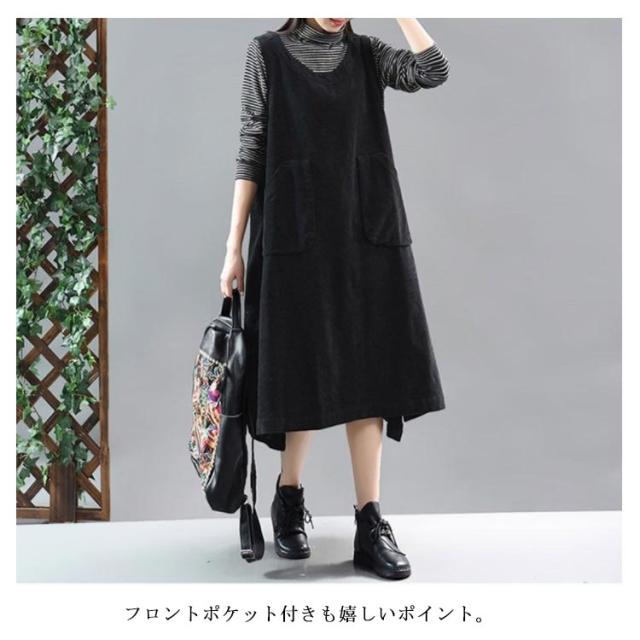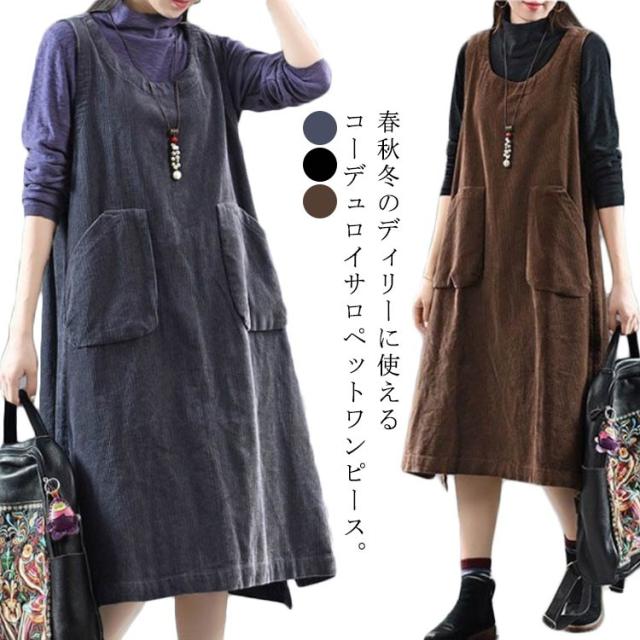ゆったり ロング丈 オールインワン コーデュロイ風 レディース コーデュロイサロペットワンピース サロペットスカート スカート aライン コーデュロイ カジュアル シンプル 無地