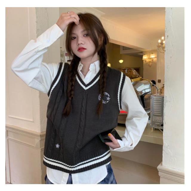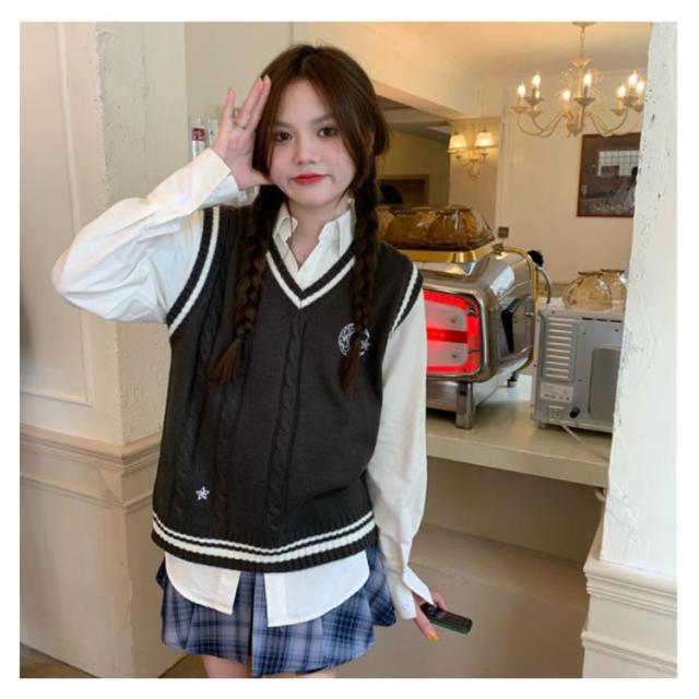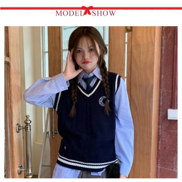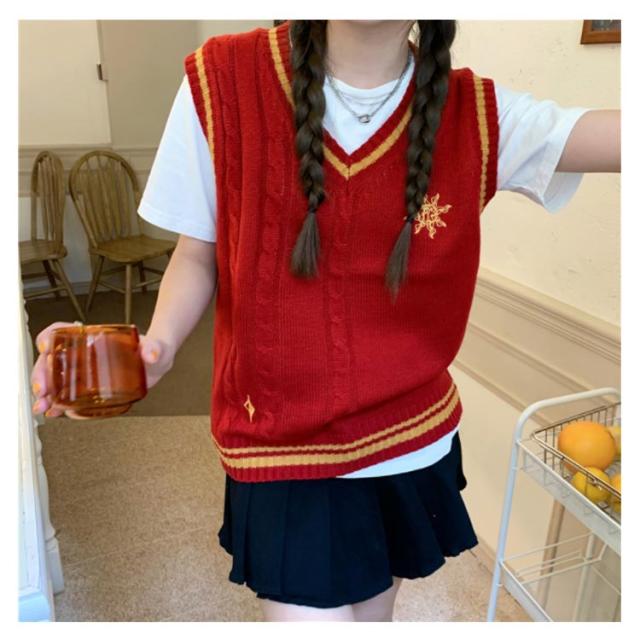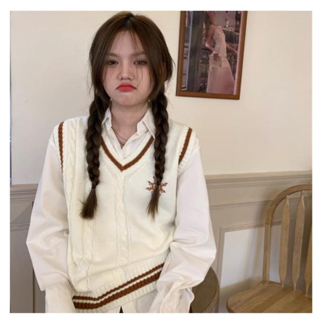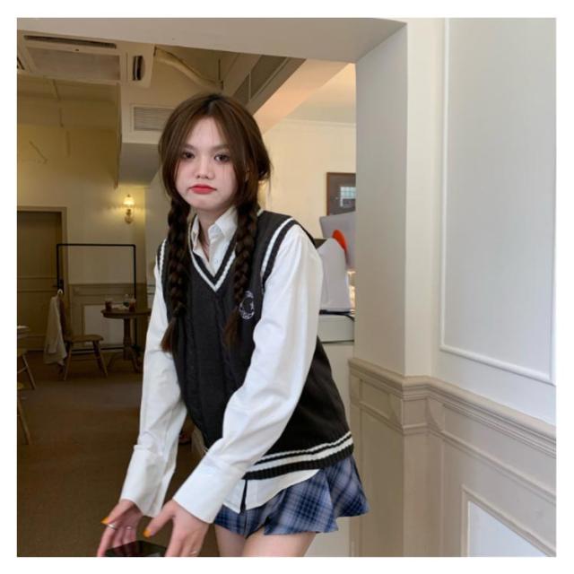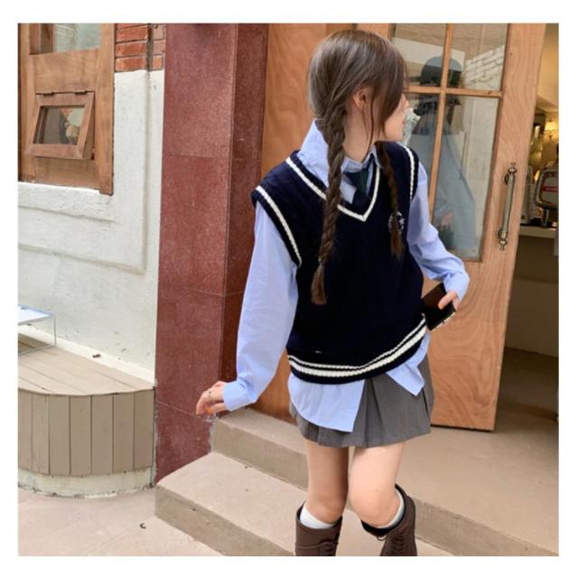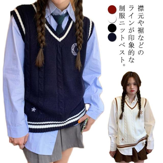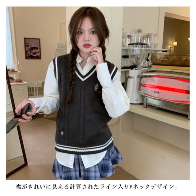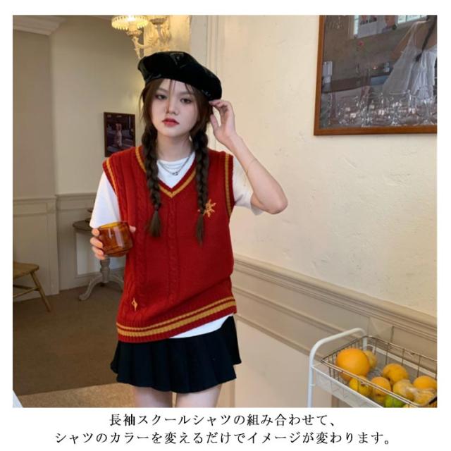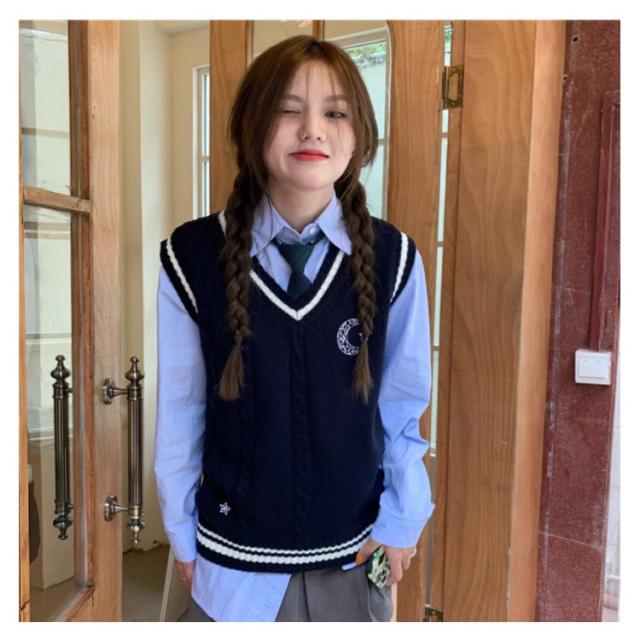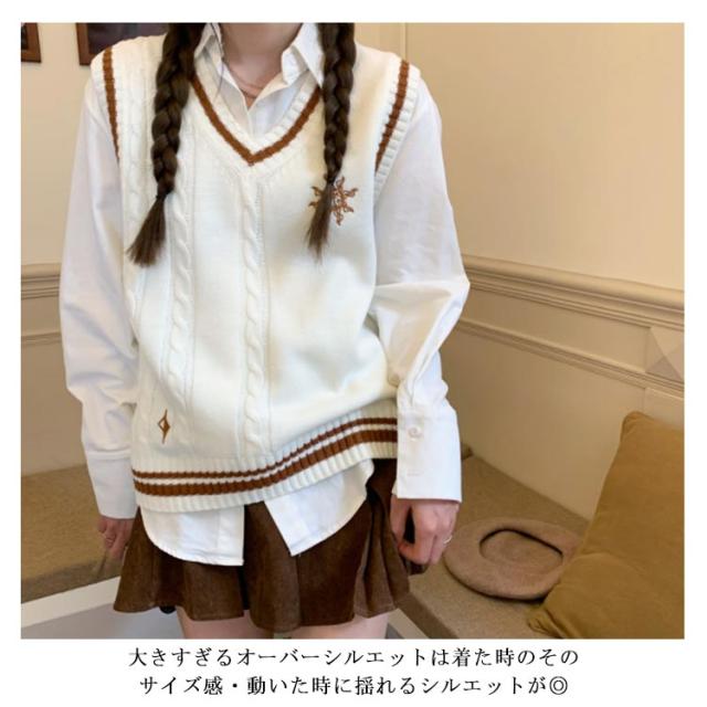 | 襟元や裾などのラインが印象的な制服ニットベスト。 大きすぎるオーバーシルエットは着た時のそのサイズ感・動いた時に揺れるシルエットが◎ 襟がきれいに見える計算されたライン入りVネックデザイン。 長袖スクールシャツの組み合わせて、シャツのカラーを変えるだけでイメージが変わります。 年齢を選ばず、学生・女子高生の制服にも、普段使いにもお使いいただけます ! | |