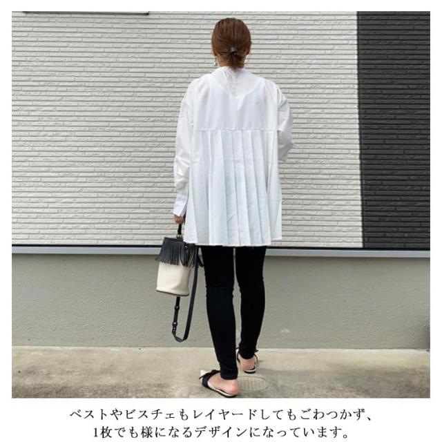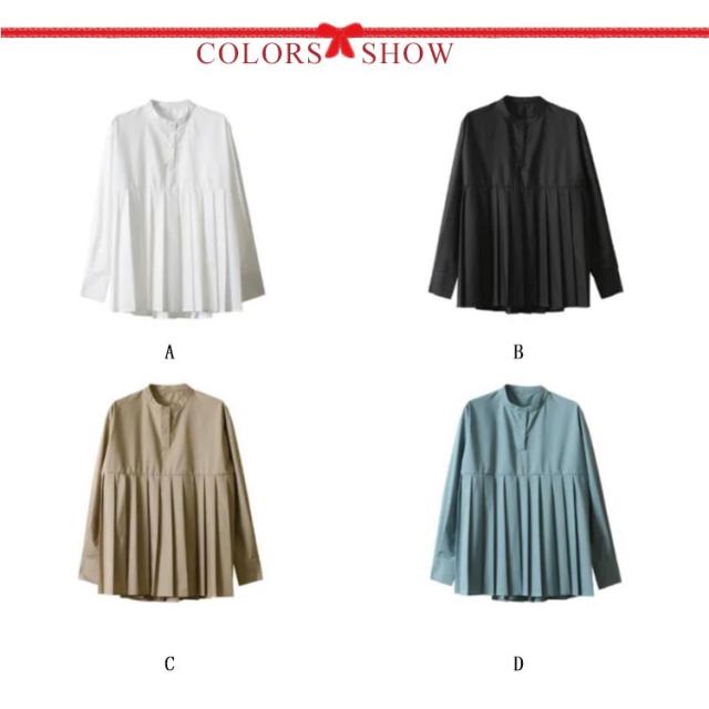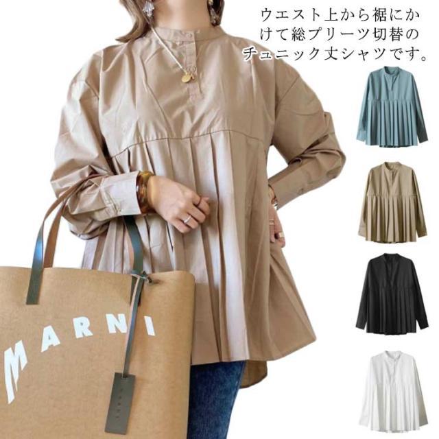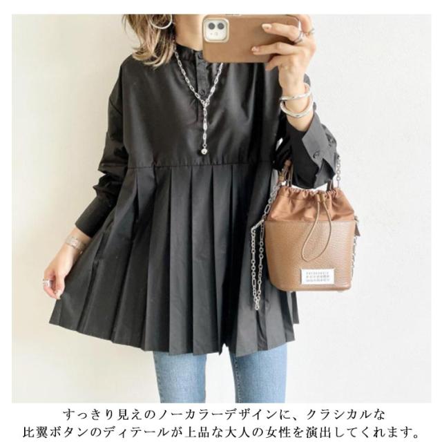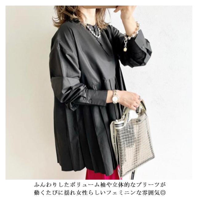 レディース ブラウス ボリューム袖 春夏 プリーツ ブラウス レイヤード ゆったり シャツ 無地 Aライン 韓国 長袖 春秋 レディース トップス ノーカラー