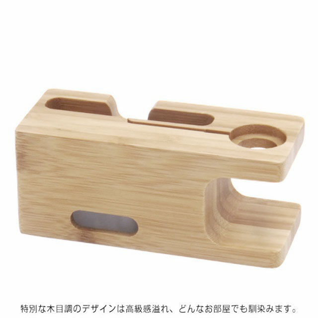 | シンプルなデザインで人目を惹く非常に実用的な充電スタンドです。 iPhonとiWatchが同時に収納また充電でき、オフィスでも寝室でも最適です。 スペースを節約し、散らかりがちなケーブルをスッキリと収納することが出来ます。 特別な木目調のデザインは高級感溢れ、どんなお部屋でも馴染みます。 | |