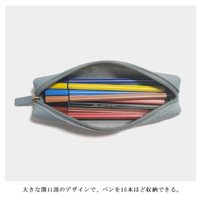 | PUレザーで作られて、軽くて耐久性が良い。 カバンに入れてもかさばらないスリムなペンケース。 大きな開口部のデザインで、ペンを15本ほど収納できる。 文房具、テーブルの上で散らばりそうな小物も、一気におしゃれに片付ける。 | |