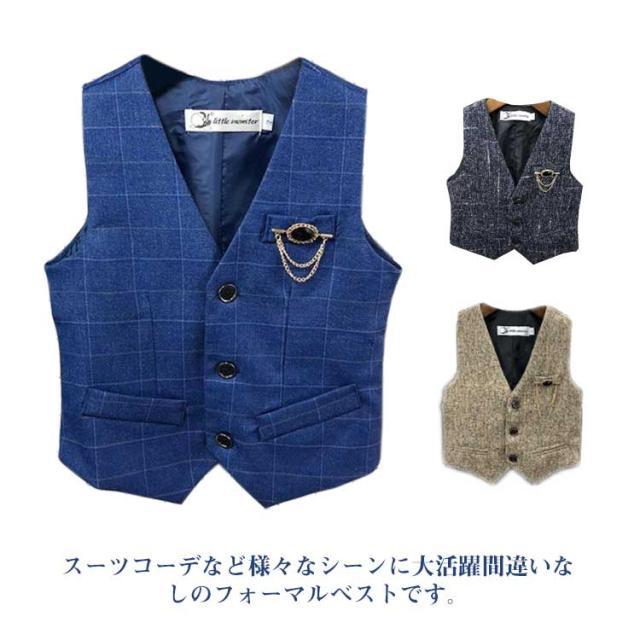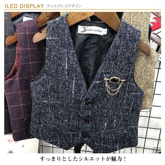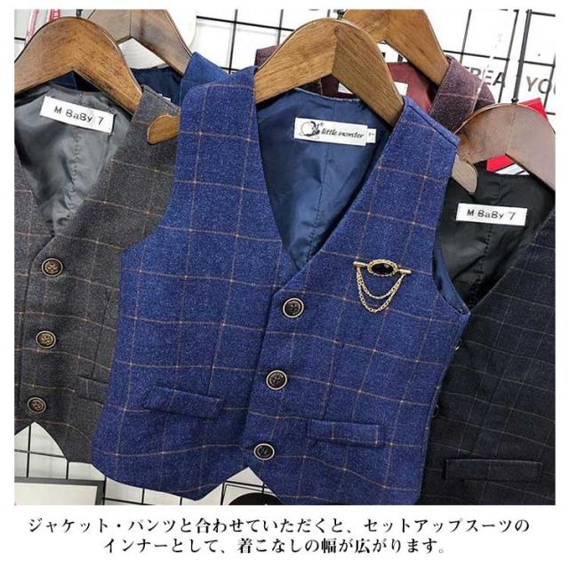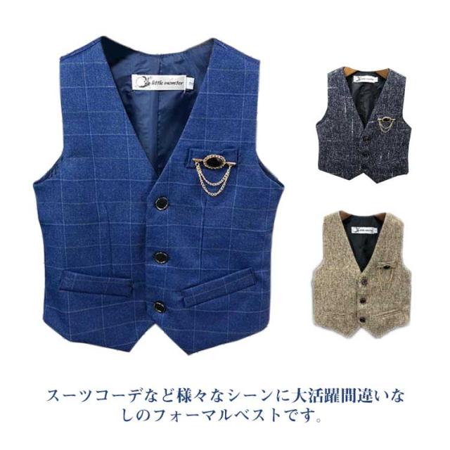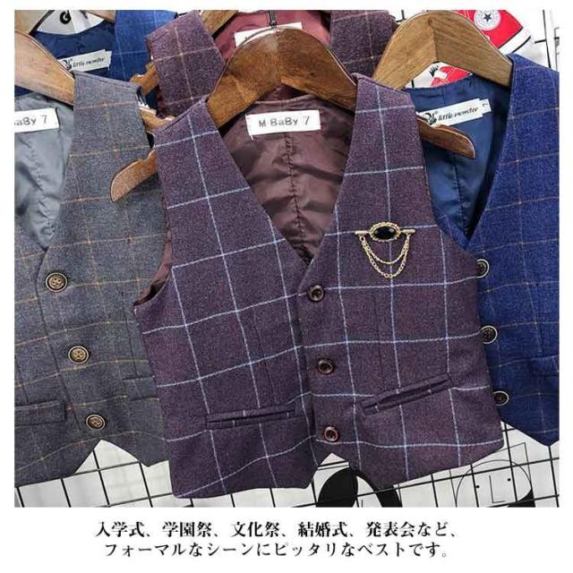フォーマルベスト 無地 男の子 ジレ 男の子 子供 綿 スーツベスト 結婚式 子供服 子ども キッズ服 こども用 入学式 卒業式 入園式 紳士服 七五三 初節句 発表会 90 100 110 120 130 チェック柄
