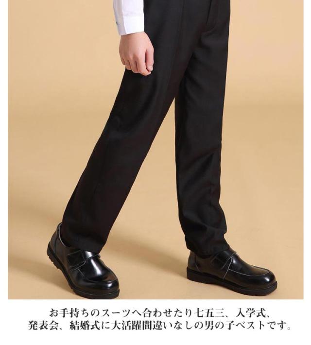 | きちんと感のある男の子用スラックスが新登場! シンプルな無地タイプで色々なコーディネートに合うパンツ。 きちんとした印象のボタン+ファスナー仕様のウエストは、シャツをインしてもきれい。 お手持ちのスーツへ合わせたり七五三、入学式、発表会、結婚式に大活躍間違いなしの男の子ベストです。 | |