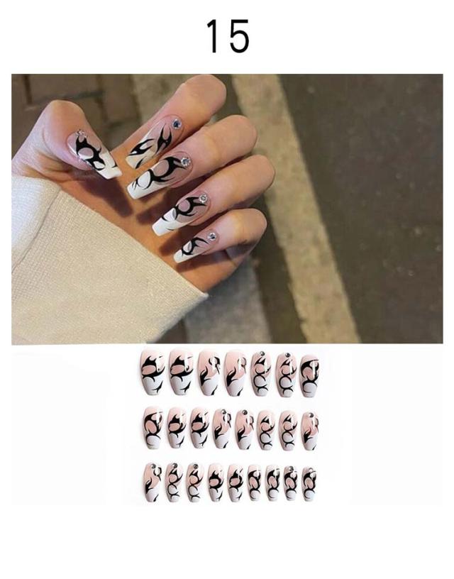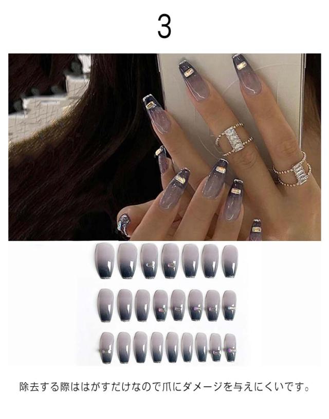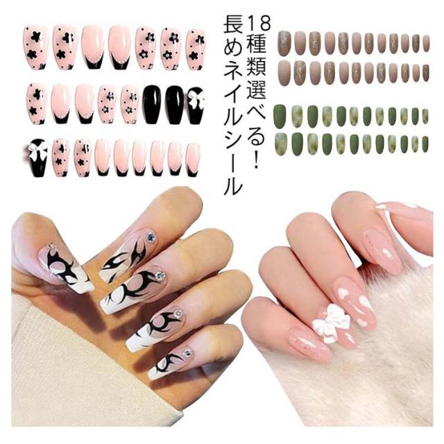 | 18種類選べる!長めネイル 貼るだけで可愛いアートが楽しめるネイル! お手軽!セルフネイルの完成! 除去する際ははがすだけなので爪にダメージを与えにくいです。 | |