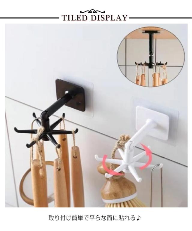 | 収納フック 取り付け簡単で平らな面に貼れる♪ 嬉しい2個セットでキッチンをすっきり片付けよう♪ 回転式360度回転するから取り出しやすくストレスフリー! 耐荷重耐荷重10で様々な物を吊り下げて収納で嬉しい♪ | |