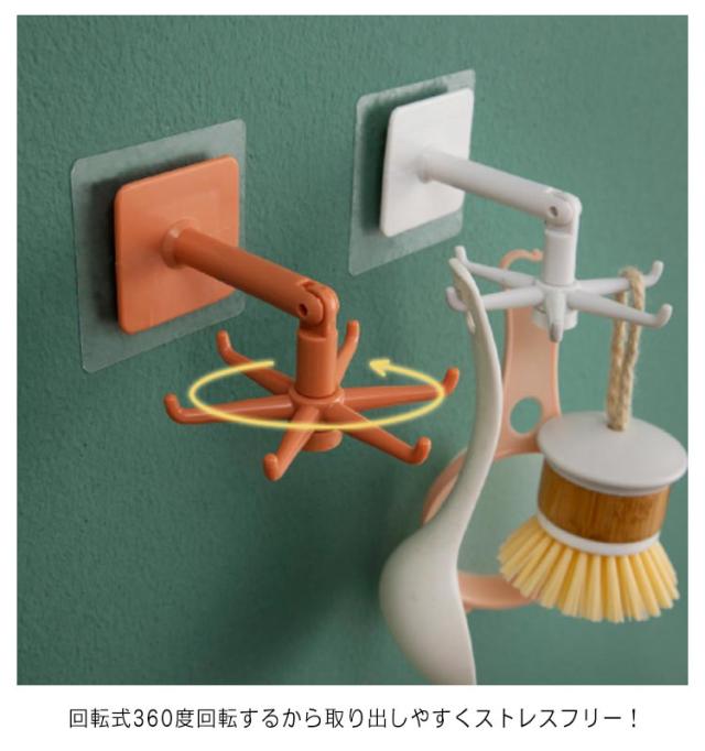 収納 食器ラック ホルダー キッチンツール収納 回転 360度 貼るだけ 吊り下げ ABS素材 キッチン雑貨 調理器具 調理器具ハンガー 台所用品 穴あけ不要 タオル掛け バスルーム 360度回転フック付き ホルダー