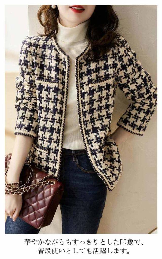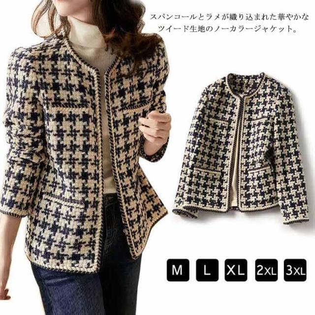 ママスーツ シャイニー ツイード アウター レディース ツイード生地 ショート丈 ノーカラー コート フォーマル ショート丈 ラメ入り ノーカラージャケット 卒業式 入学式 通勤 ビジネス オフィスカジュアル 大きいサイズ 春 ツイードジャケット