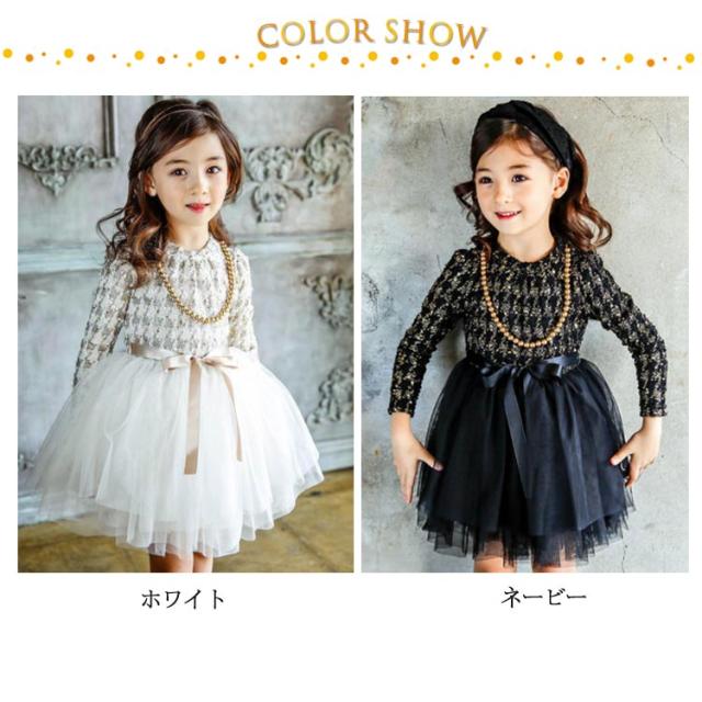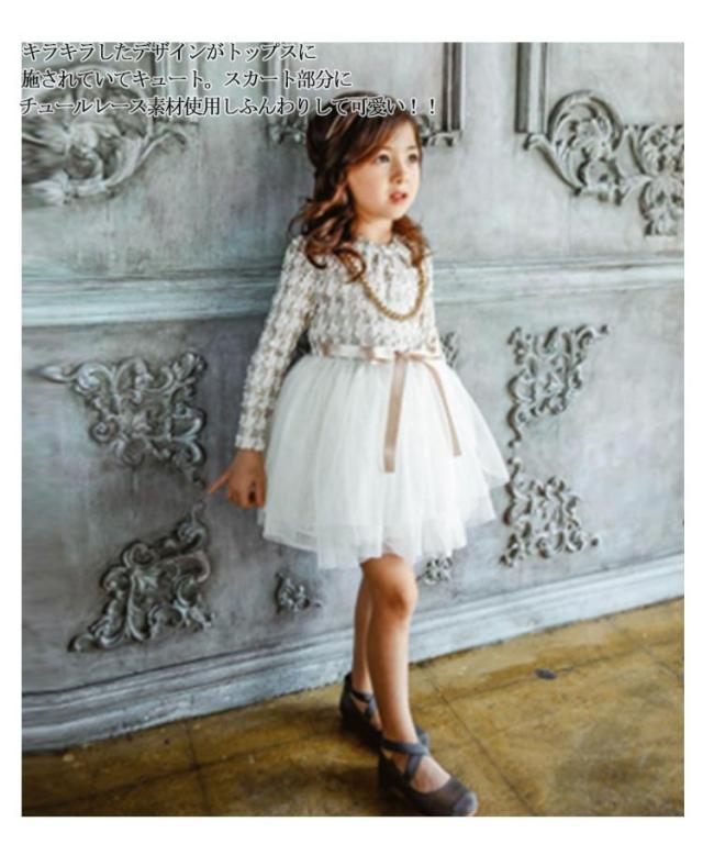 | かジュアルにもお出かけにも使える万能なワンピース。 肌触りに優しい素材で着心地よくなります。 キラキラしたデザインがトップスに施されていてキュート。スカート部分にチュールレース素材使用しふんわりして可愛い!! 発表会やコンクールはもちろん結婚式などのパーティーシーンでも一目惹く華やかなドレスです。 普段使いはもちろん、入学式や結婚式、ピアノの発表会などもおすすめ! | |