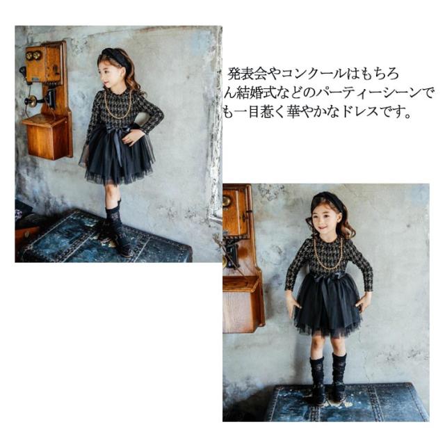 チュールワンピース 上品 ワンピース おしゃれ ドレス 子ども服 女の子 フォーマル Aライン ドレス 発表会ドレス チェック柄 キッズダンス 衣装 子供服 結婚式 秋 入学式 卒業式 発表会 長袖 春 女の子ワンピース 100 110 120 切り替え