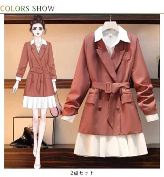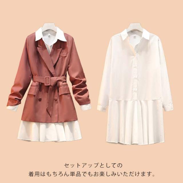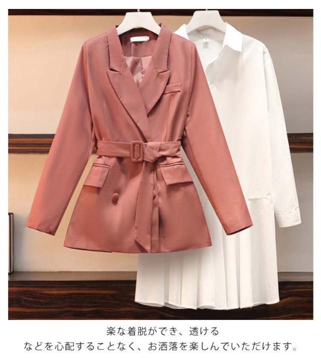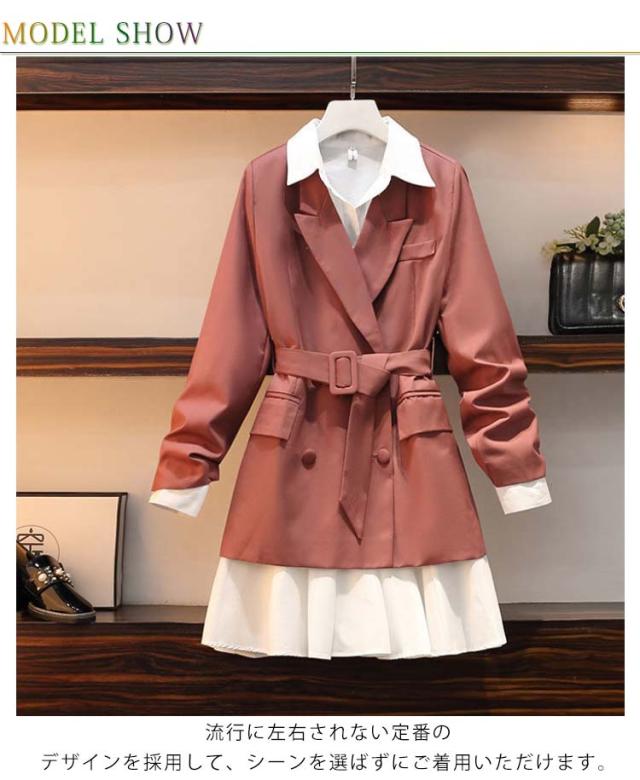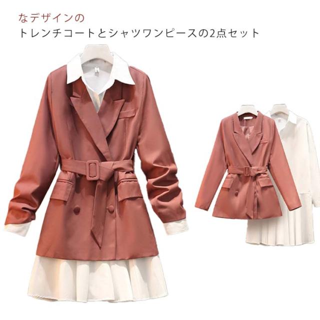 長袖 ロング 着痩せ セットアップ フォーマル トレンチコート スーツ 無地 上着 アウター チュニック シャツ ワンピース ジャケット スプリングコート 春 秋 きれいめ レディース 通勤 ビジネス オフィス シャツワンピース
