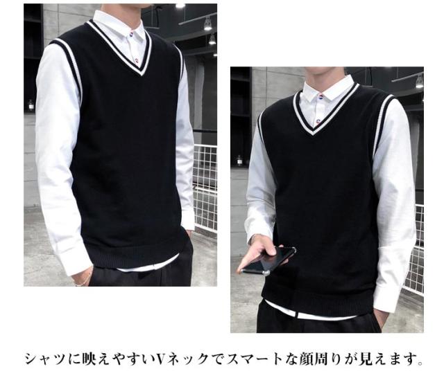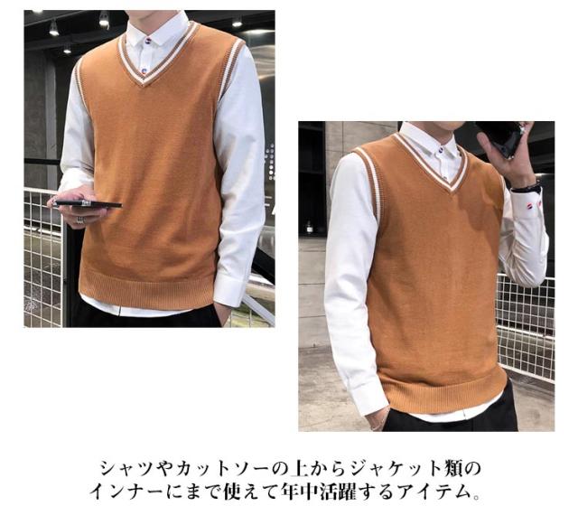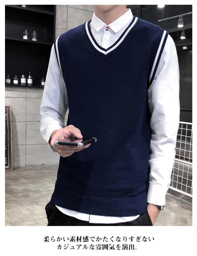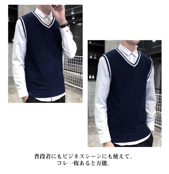 ベスト ニットベスト Vネック 定番 カジュアル 重ね着 ノースリーブ セーター メンズ ニットトップス 色切り替え 春新作 大きいサイズ レイヤード リブニット コーディネート 無地 インナー 普段着 ビジネス 通勤 通学 ニットセーター