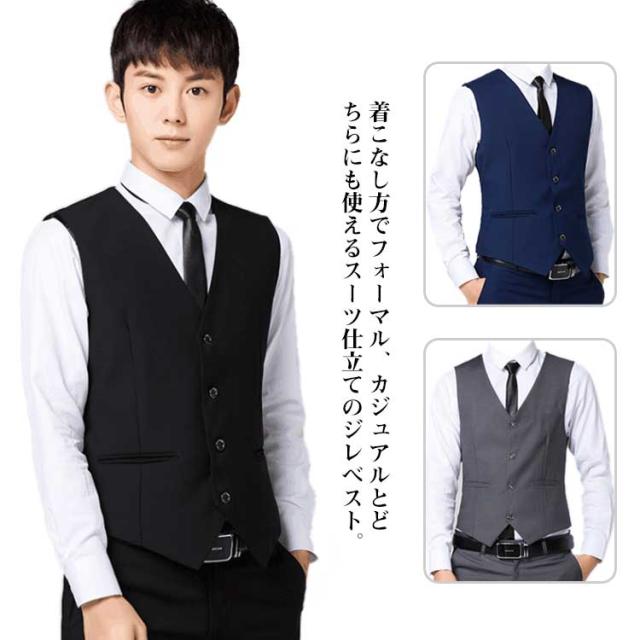 ベスト メンズ ノーカラー スーツベスト スーツ フォーマル 入園式 秋冬 4つボタン スーツ仕立て 新社会人 大きいサイズ 結婚式 二次会 卒業式 就職活動 シングル オールシーズン 春夏 スリム