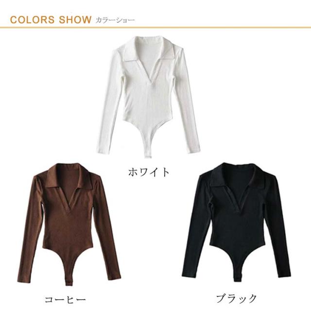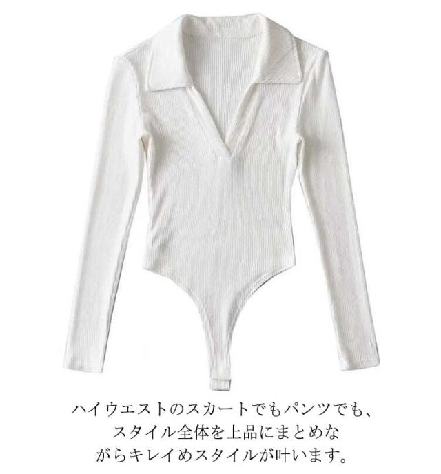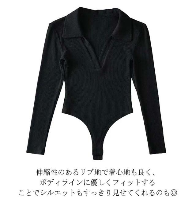 つなぎ ボディースーツ レオタード 長袖 カットソー 肌着 スリム リブニット Tシャツ ボディブリファー 春 オールインワン インナー ツナギ タイト レディース 肌着 細身 ストレッチ 無地 シンプル セクシー おしゃれ 秋 冬 ポロシャツ