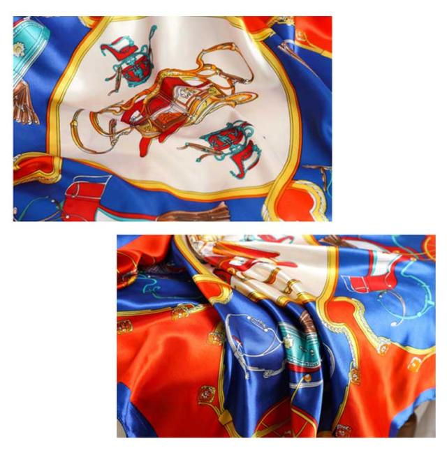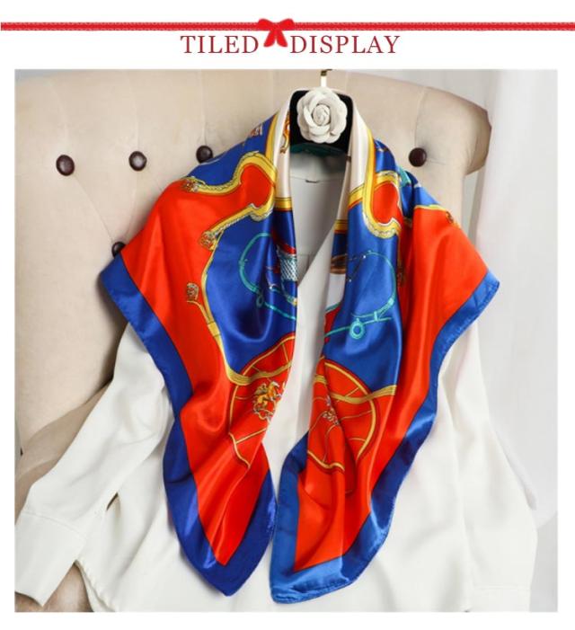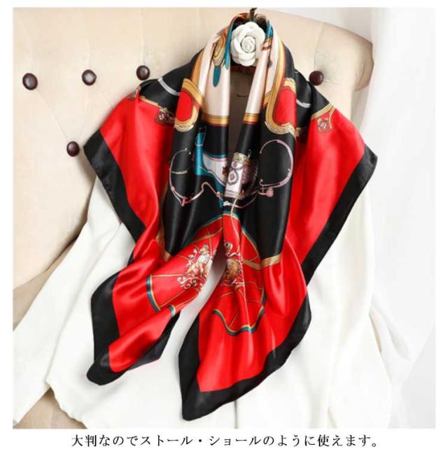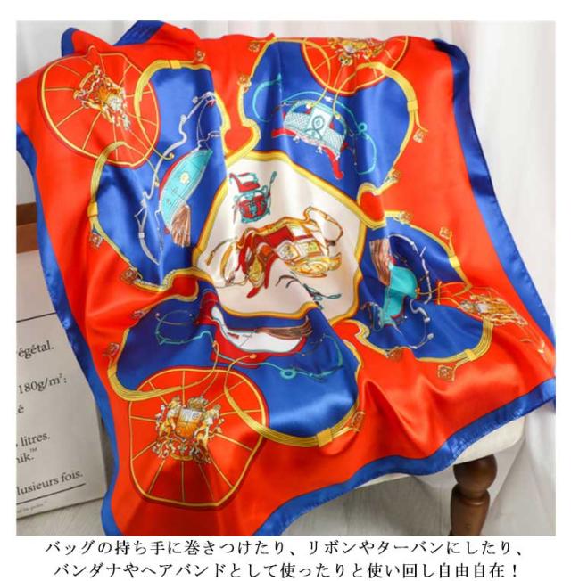 90cm スカーフ 大判 ヘアクセサリー 90cm ストール シルク調 ハンダナスカーフ 正方形 バッグチャーム バッグスカーフ レディース