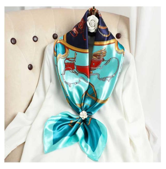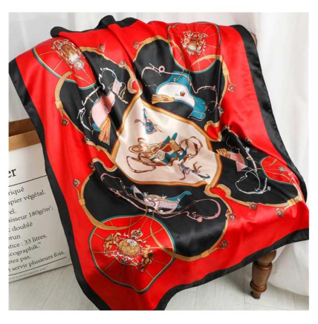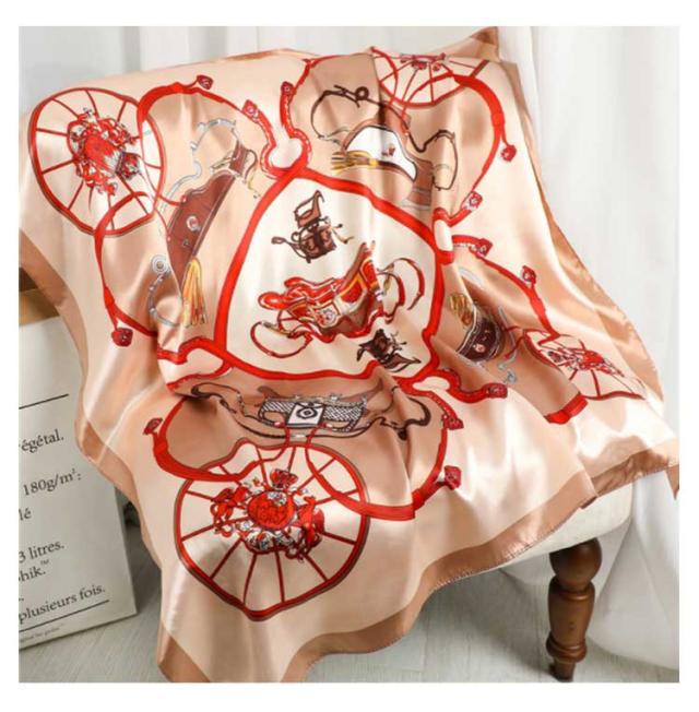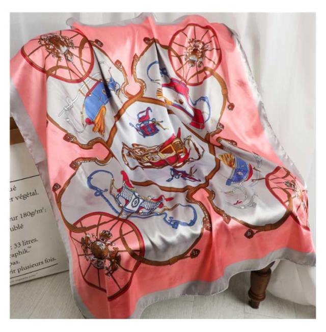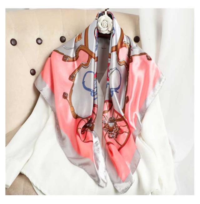 | 正方形の万能スカーフ。 バッグの持ち手に巻きつけたり、リボンやターバンにしたり、バンダナやヘアバンドとして使ったりと使い回し自由自在! 大判なのでストール・ショールのように使えます。 ツヤと光沢のある滑らかな生地です。 | |