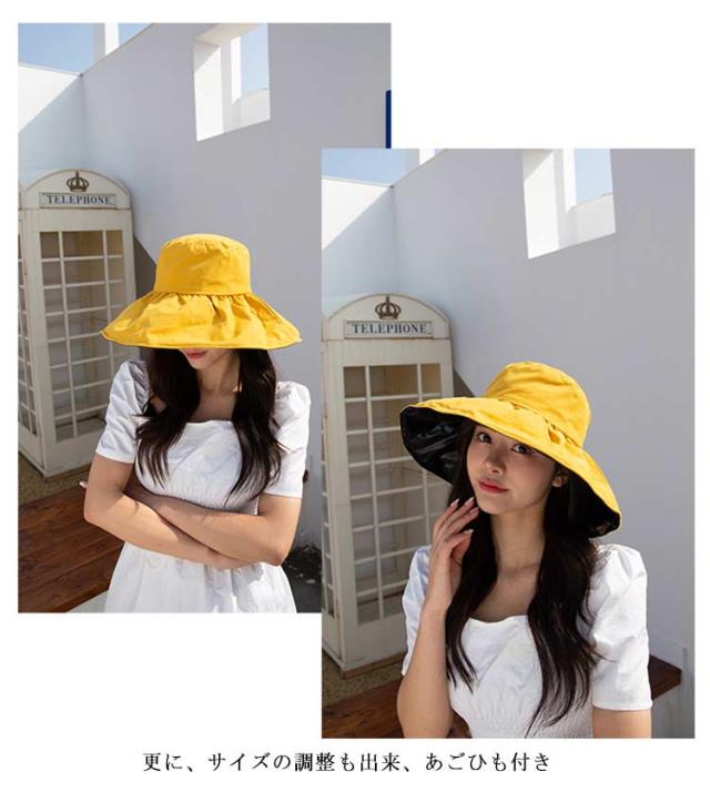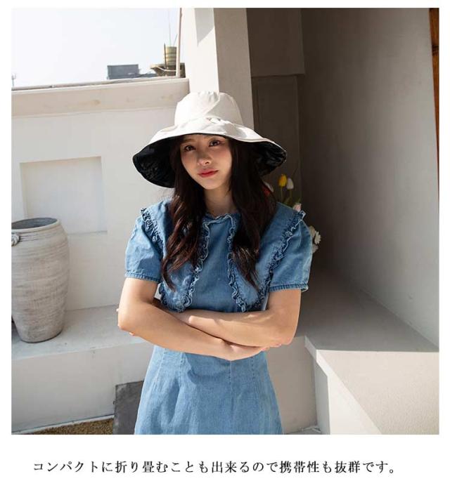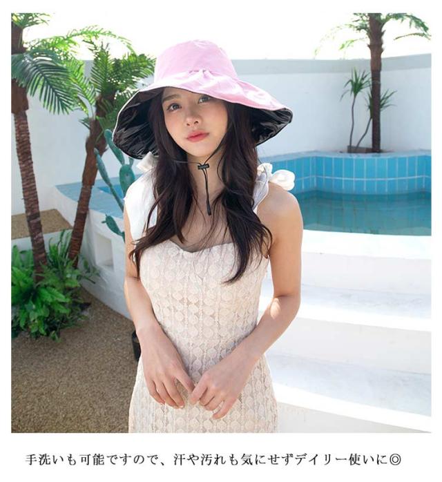 レディース つば広 旅行 UVカット 小顔効果 紫外線カット 紫外線対策 ハット あごひも付 紐付き オシャレ UV サイズ調整可 ハット 日よけ 折りたたみ ウォーキング 散歩 自転車 帽子
