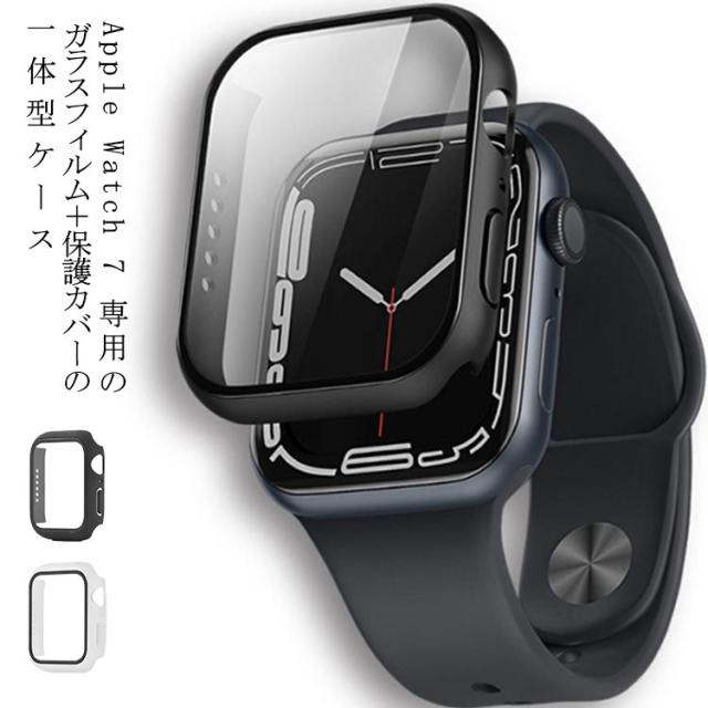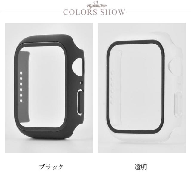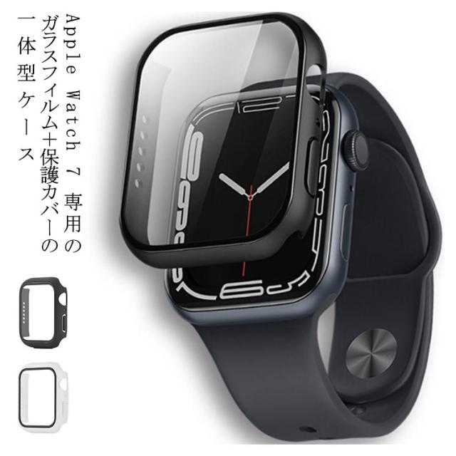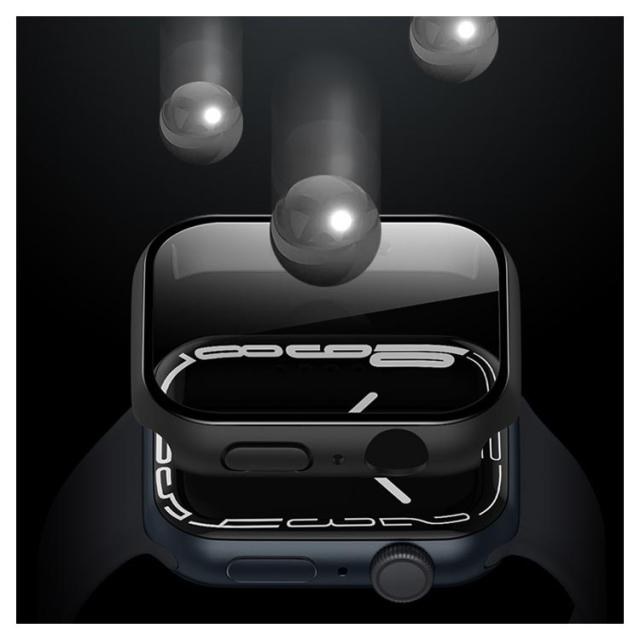 45mm Watch カバーケース ブラック 41mm 画面保護 アップルウォッチ 強化ガラス PC素材?フィルム Apple 一体型 耐衝撃 7 硬度9H 全面保護 クリア 着脱簡単 軽量 透明 黒 保護ケース