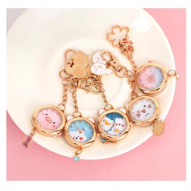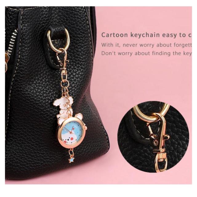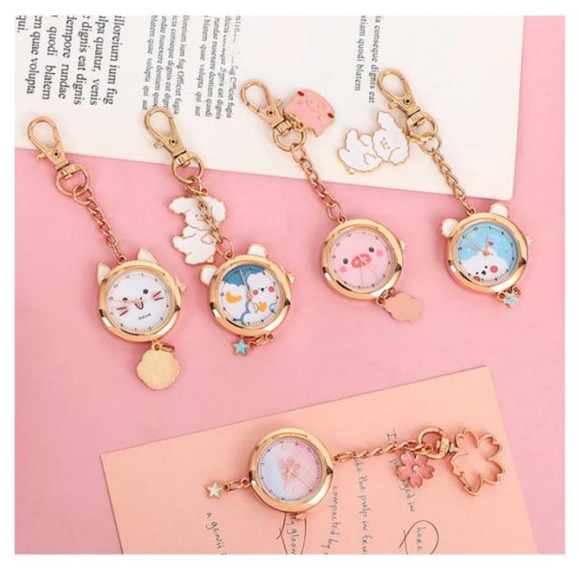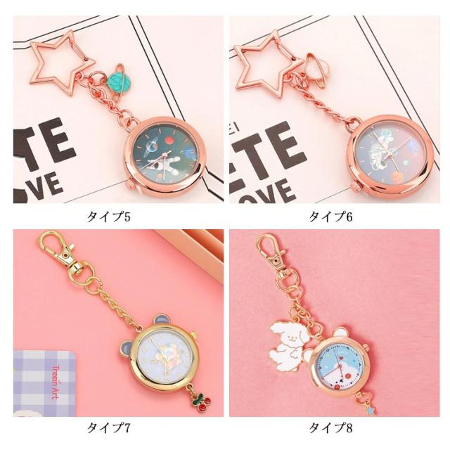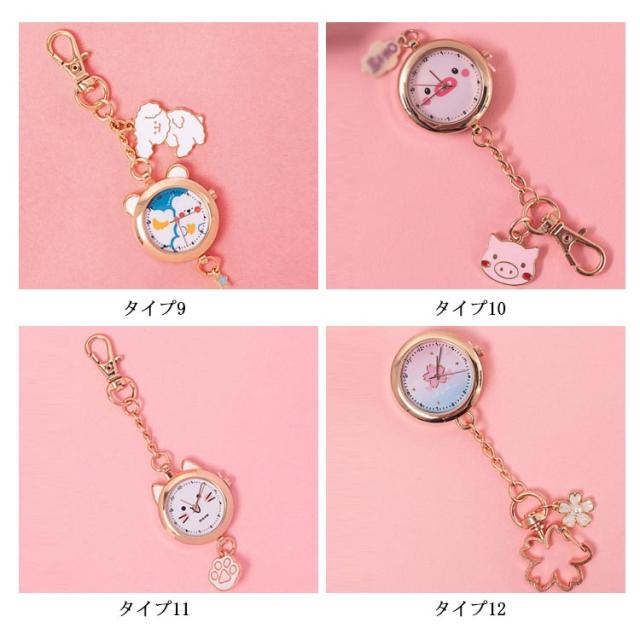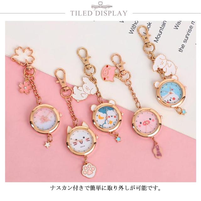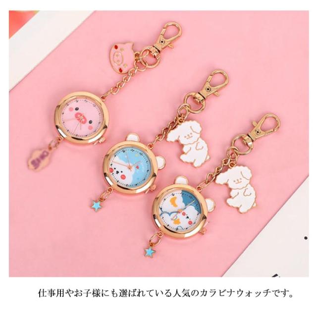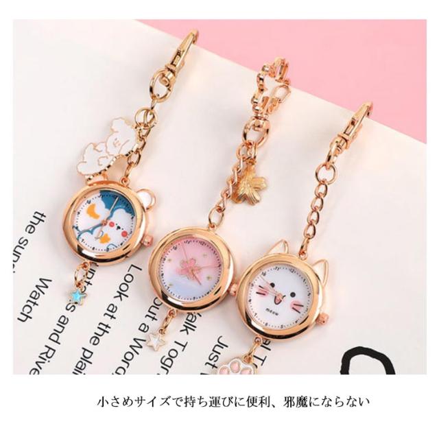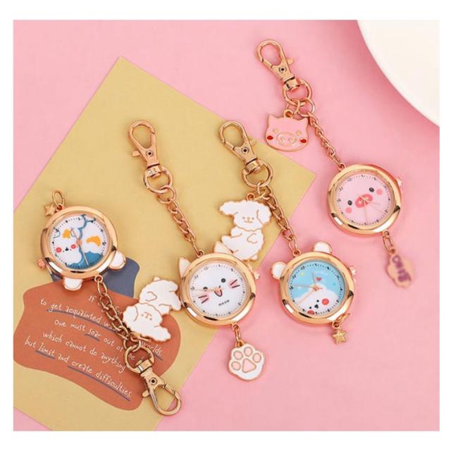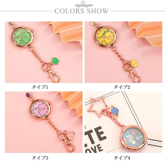 懐中時計 ナースウォッチ キーホルダー かわいい おしゃれ 時計 ナスカン リュック バッグ ポケット ランドセル キーリングウォッチ 通勤 通学 仕事 レディース 防水 学生 シンプル 文字盤?見やすい クオーツ 動物 送料無料