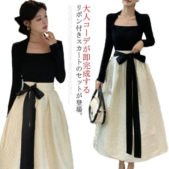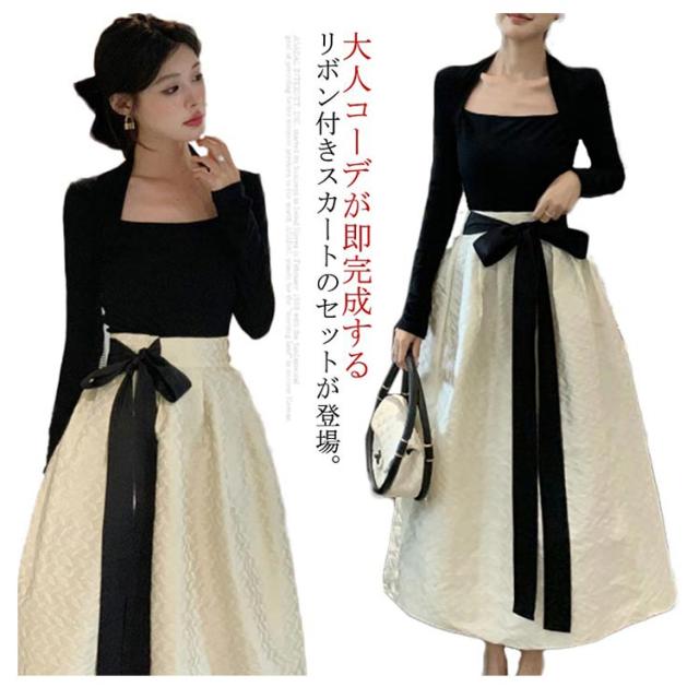 レディース スカート 清楚 結婚式 トップス ミセス セレモニー フォーマル Aラインスカート ワンピース風?大人可愛い セットアップ かわいい おしゃれ 40代 フェミニン リボン ママ 20代 30代 カジュアル?スーツ