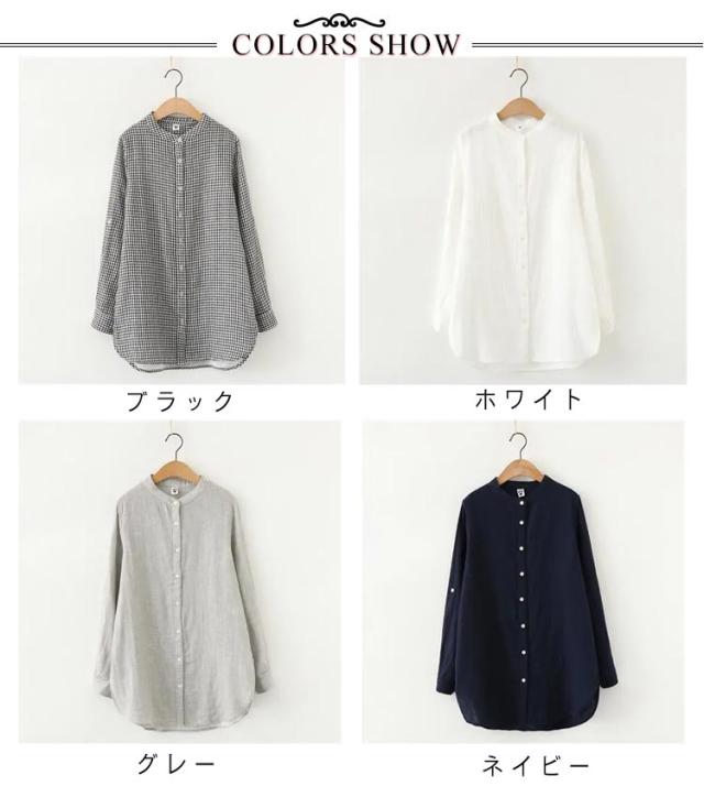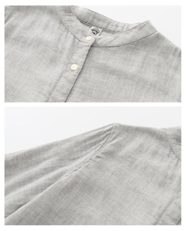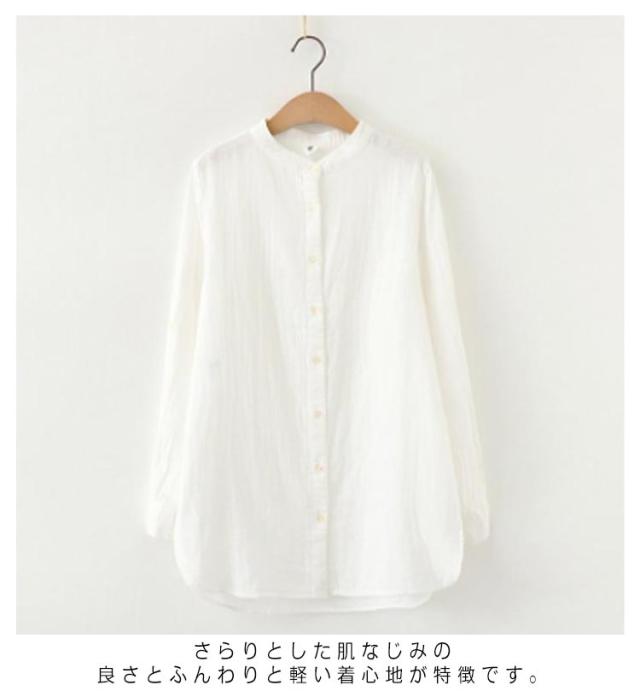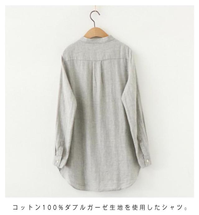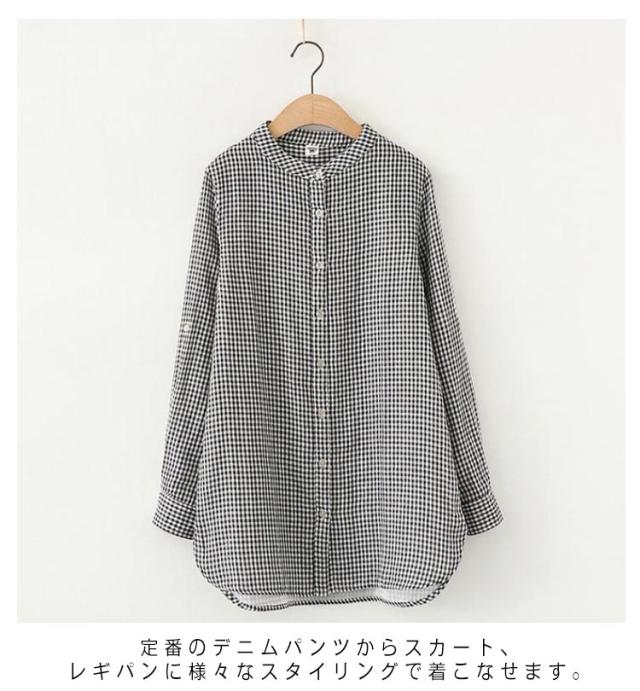 | コットン100%ダブルガーゼ生地を使用したシャツ。 さらりとした肌なじみの良さとふんわりと軽い着心地が特徴です。 バンドカラーにキンガムチェックや無地の配色、大人カジュアルスタイルによく合います。 定番のデニムパンツからスカート、レギパンに様々なスタイリングで着こなせます。 | |