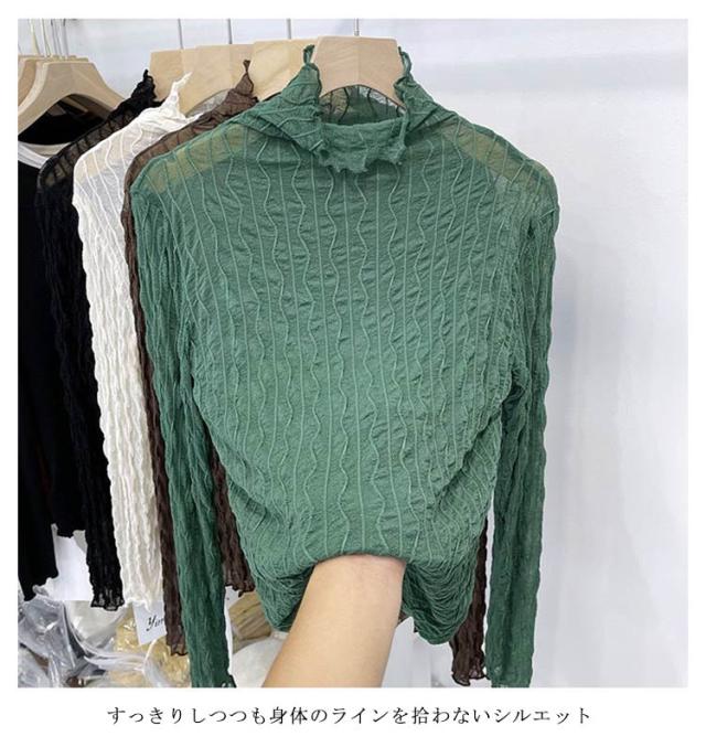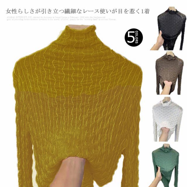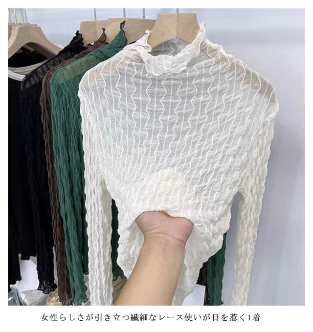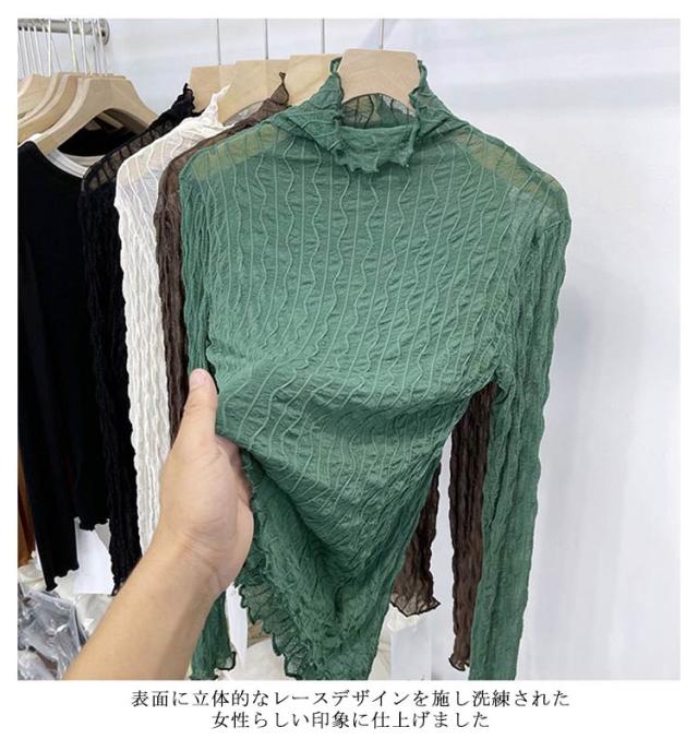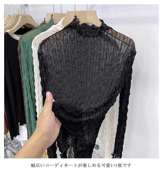 送料無料 コーデ インナー レーストップス レイヤード レースブラウス タートルネック 透け感 長袖 レースインナー 重ね着 薄手 チュールレース レディース フォーマル 大人 レーストップス おしゃれ