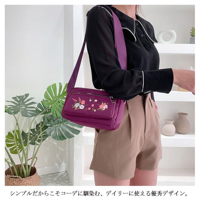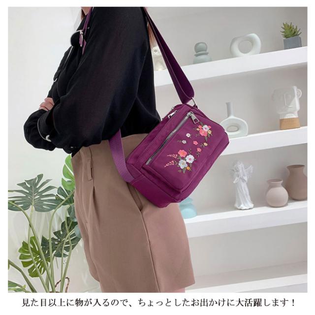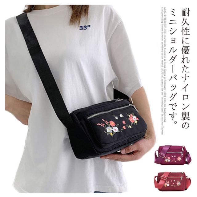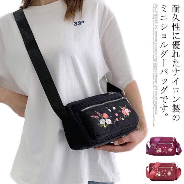 レディース ミニショルダーバッグ ナイロン 斜めがけ 花柄 大人 耐久性 小さめ ショルダーバッグ 刺繍 スクエア ミニ ショルダーバッグ ミニバッグ 四角 可愛い おしゃれ かわいい