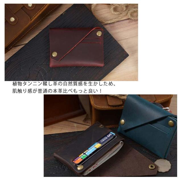 | カード入れ*10 お札入れ若干 しっかり厚手天然牛革、シワやムラなど牛革自然素材の独特風合いがビンテージを演出!植物タンニン鞣し革の自然質感を生かしため、肌触り感が普通の本革比べもっと良い! 使い込む程体に馴染む、ビンテージからますますオイル光沢になる経年変化起こり、牛革真の価値を発揮する。 カードを収納するだけでなく、鍵、お札や小銭まで収納できる。 持っていると何かと活躍してくれそうです♪ プレゼントにも喜ばれそうですね! | |