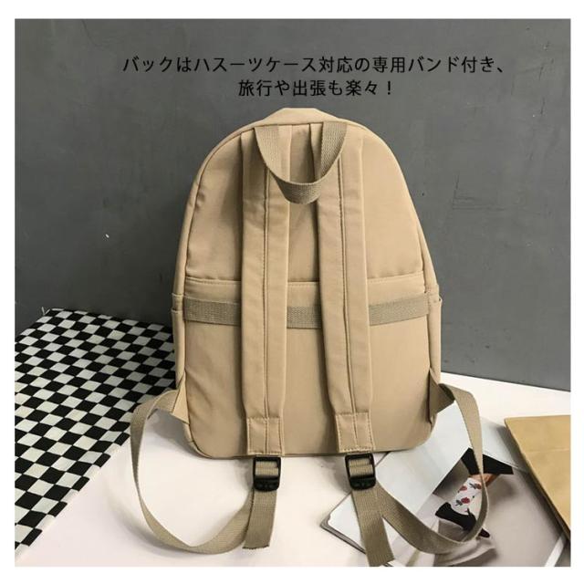 | 飾り気のないシンプルなデザインのリュックサック メイン収納スペースはダブルファスナーで大きく開き、出し入れがラクラク。 隠れて見えない仕様ですが、側面にも小さな収納スペースがあります。 後ろには簡単にアクセスできるバックポケット付きます。 バックはハスーツケース対応の専用バンド付き、旅行や出張も楽々! 清潔感のあるデザイン、どんな服にも相性抜群で通勤、通学にピッタリなアイテムです。 | |