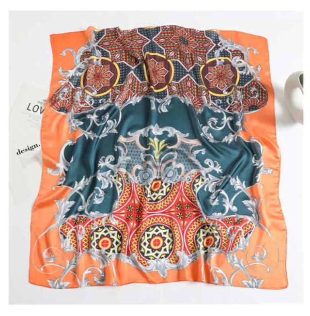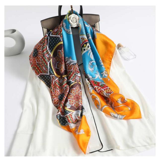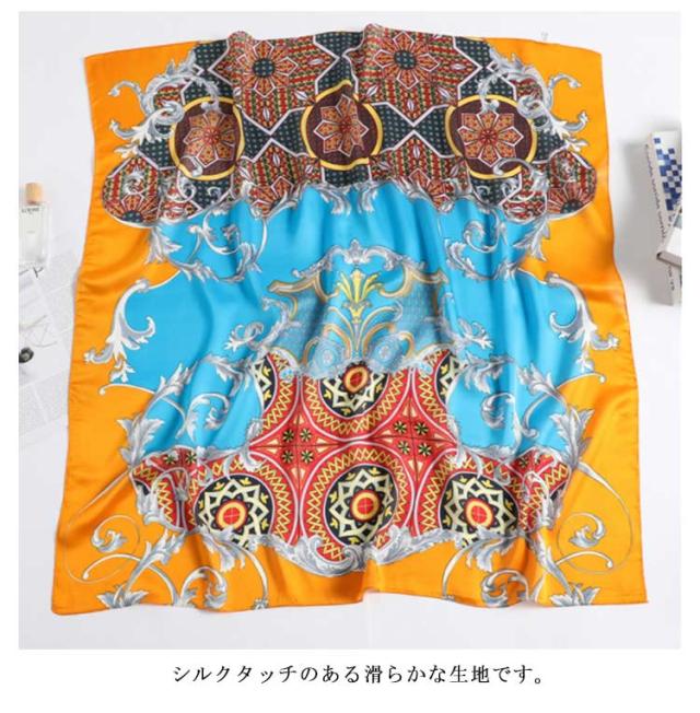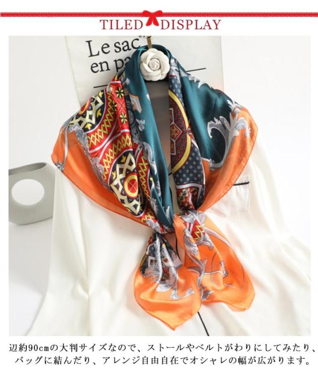 スカーフ 正方形 レディース 90cm 総柄 柄 スカーフ ストール シルク調 ハンダナスカーフ ヘアクセサリー バッグチャーム バッグスカーフ 大判