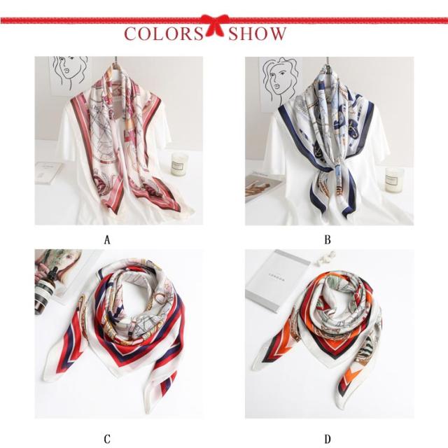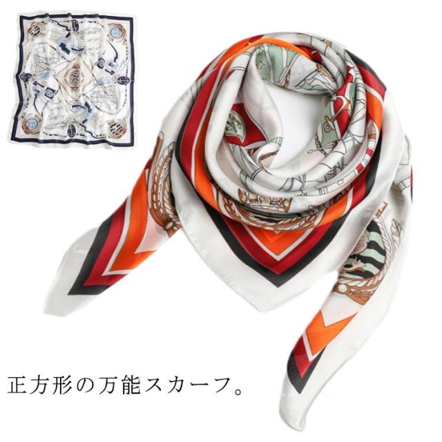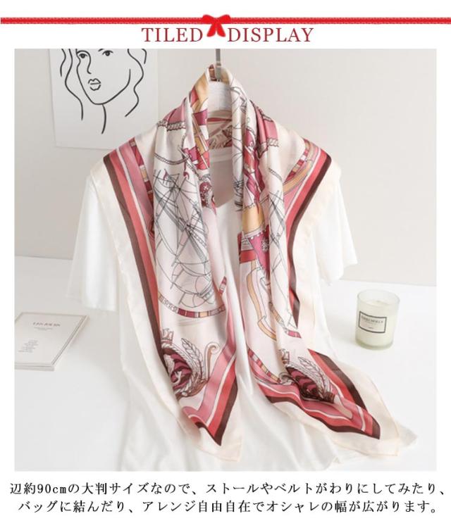 総柄 大判 スカーフ 90cm シルク調 柄 レディース ストール 正方形 ハンダナスカーフ スカーフ バッグチャーム バッグスカーフ ヘアクセサリー
