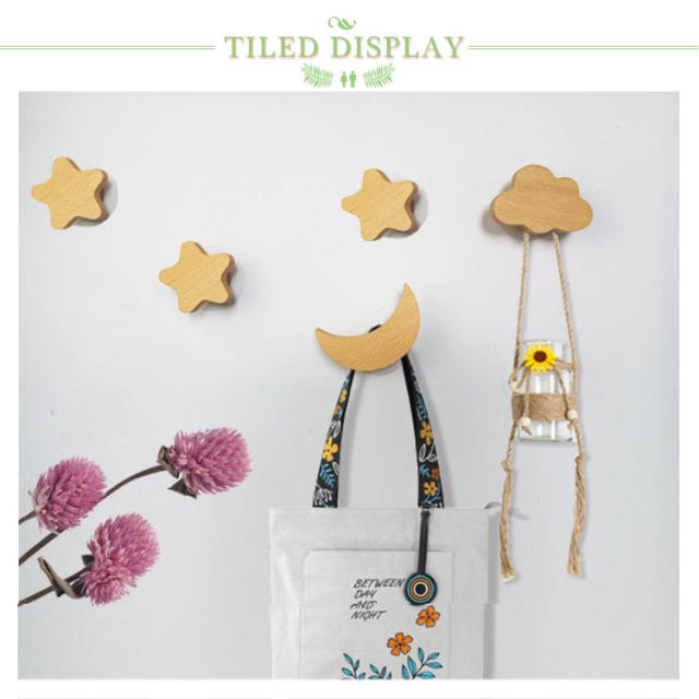 フイルムフック 子供部屋 北欧木製フック 強力粘着 フック 洋服掛け おしゃれ 粘着式 ナチュラル インテリア 壁掛け 2way キッズルーム 鞄掛け 可愛い ネジ式 しずく 星 雲 月 帽子掛け
