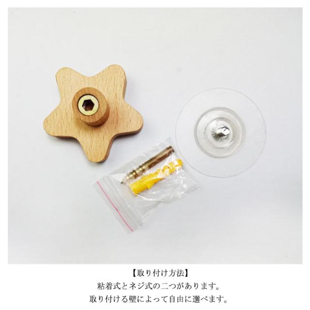 | 【ナチュラルなウッド素材】 木製の優しい質感でおうちの雰囲気を変えてくれます。 かわいいデザインのインテリアアイテムです。 【取り付け方法】 粘着式とネジ式の二つがあります。 取り付ける壁によって自由に選べます。 粘着式は穴開けが不要のフィルムで作られているため、とり付け面にキズをつけません。 貼り付け跡も残りません。 ネジ式は、石膏ボードやベニヤ板などに使用できます。 【広く活躍できる】 扉、玄関口、居間、キッチン、寝室、子供部屋など。 耐荷重が5kgだから、バッグ、コート、ヘッドフォン、帽子、スカーフ、傘、タオルなど幅広く使えます。 【優れた耐荷重】 フィルム吸盤は普通の両面テープ吸盤と違い、壁との隙間をなくし粘り強く接着できるため時間がたっても全然落ちません! 釘タイプはアンカボルトつきなので、さらに丈夫で耐荷重もアップできます! | |