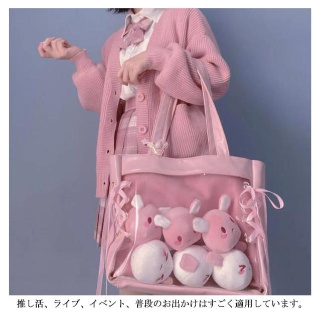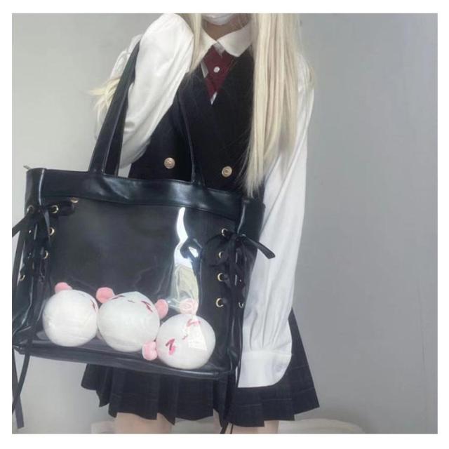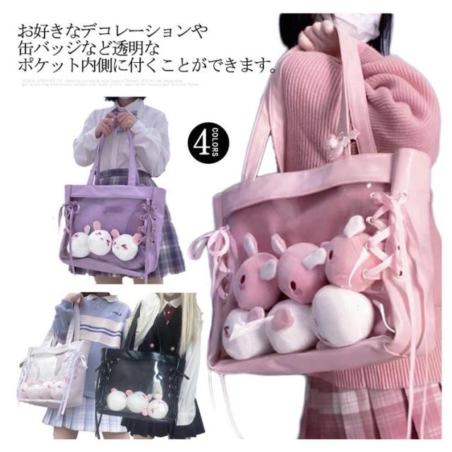 魅せトート ビニールトートバッグ レースアップ 手提げ レディース 推し活 トートバッグ カバン 痛バ デコバッグ かわいい PUレザー 透明 肩掛け 痛バ 2way 痛バッグ ライブ イベント 大容量
