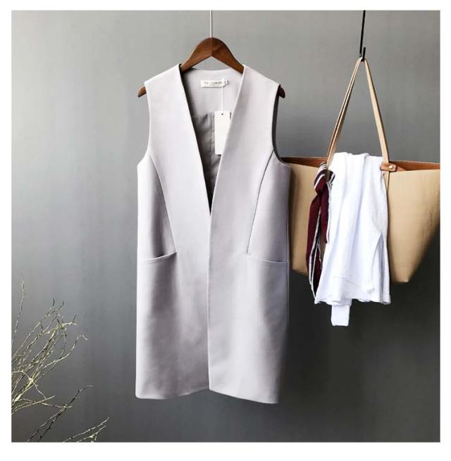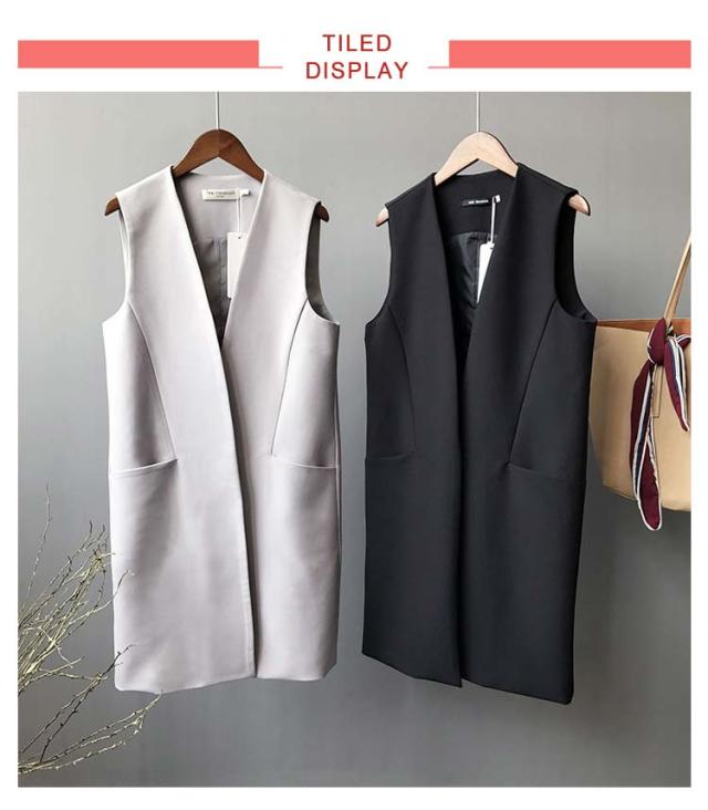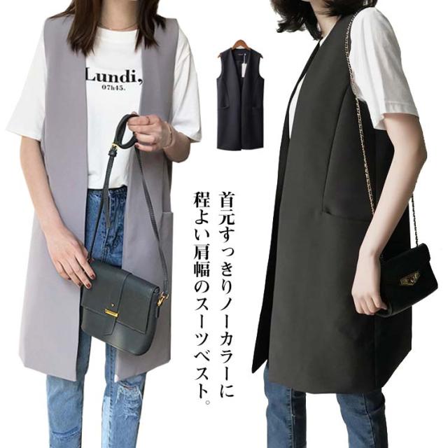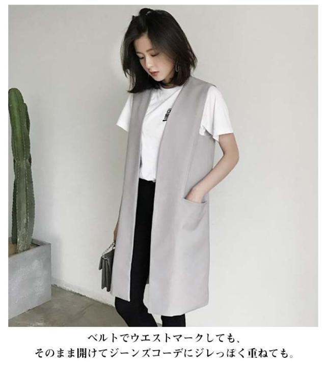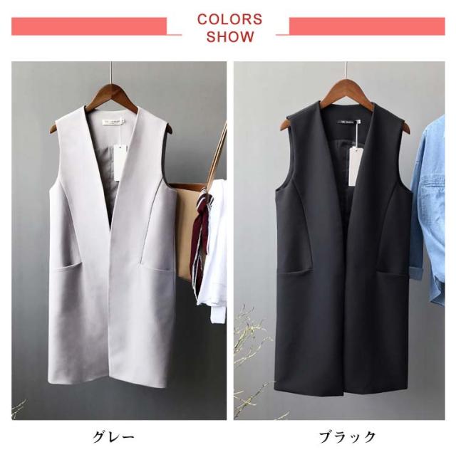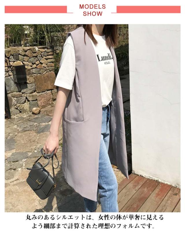 ノーカラー アウター カーディガン ロングジレ 無地 レディース トレンチベスト ノースリーブ ロングベスト 羽織 アウター 着痩せ ジレンチ ガウン ポケット付き おしゃれ ロング丈 着回し ゆったり 大人 OL 通勤 20代 カジュアル