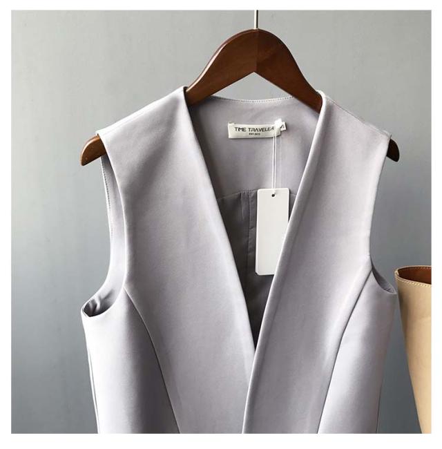 | 首元すっきりノーカラーに程よい肩幅のスーツベスト。 丸みのあるシルエットは、女性の体が華奢に見えるよう細部まで計算された理想のフォルムです。 ロング丈で気になるヒップもカバーし、サラッと羽織ればフロントに上品なドレープが生まれてスタイルよく細見え効果も。 ベルトでウエストマークしても、そのまま開けてジーンズコーデにジレっぽく重ねても。 コーディネートに取り入れるだけでも、上品な甘さのある着こなしに決まるアイテムです。 | |