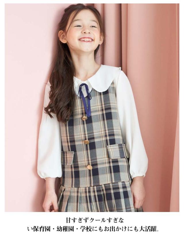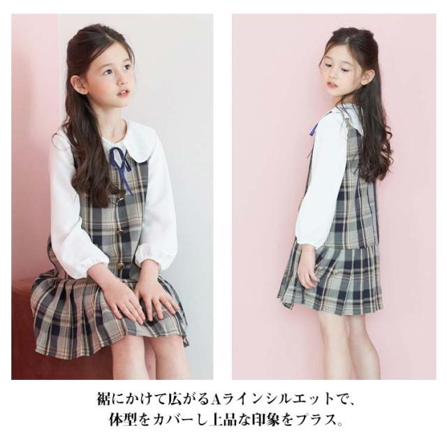 | 柔らか素材で着心地バツグン!フォーマルにオススメのジャンパースカートとブラウスの2点セット。 流行に敏感な女のコの日常を可愛く、甘く彩るデザインが人気! 大人も着こなせるグレンチェックをかわいいジャンパースカートに仕上げました。 裾にかけて広がるAラインシルエットで、体型をカバーし上品な印象をプラス。 シャツにリボンが付いているのがポイントになり可愛らしさを演出。 甘すぎずクールすぎない保育園・幼稚園・学校にもお出かけにも大活躍。 セットアップとしての着用はもちろん単品でもお楽しみいただけます。 | |